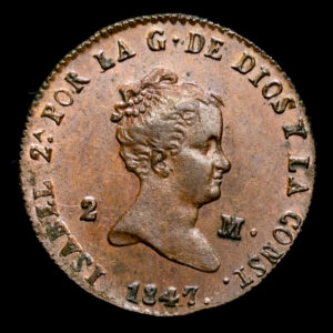 Isabel II. 2 Maravedís (2,27 g.).1847. Segovia. AC-59. EBC. Restos de brillo original.