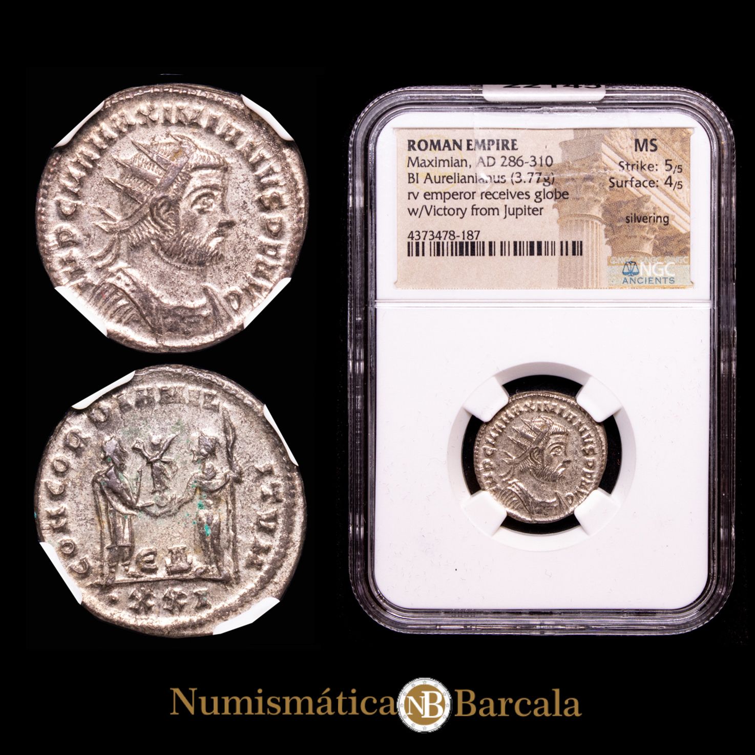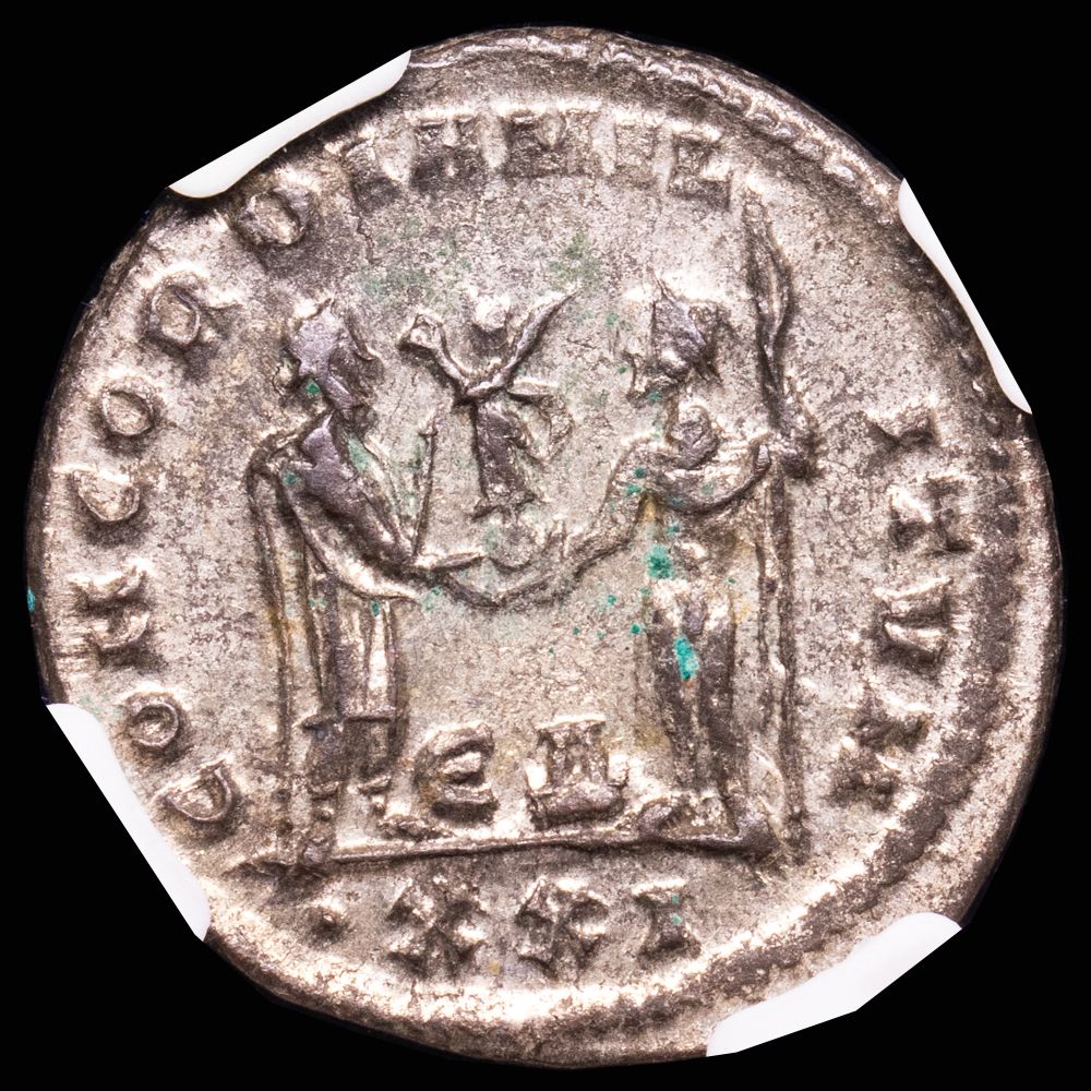 Numismática Barcala > Productos > Romanas > IMPERIO ROMANO > Bajo Imperio > 284 - 324 d.C. > Maximino II Daya > Maximiano. Antoniniano (3,67 g.). Antioquía, 293 d.C. RIC V.2 621. Encapsulado por la NGC, MS; Strike 5/5, Surface 4/5.