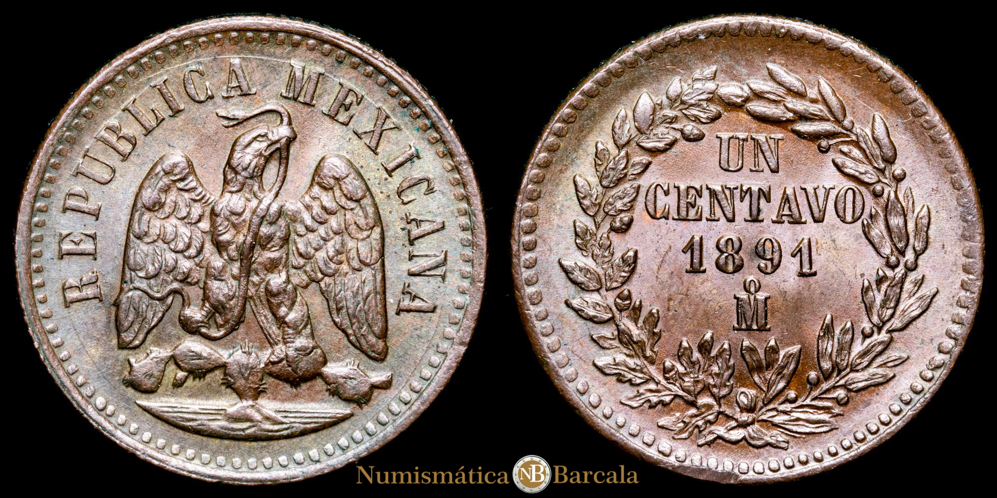 Numismática Barcala > Productos > Monedas Mundiales > América Central > México > Mexico. 1 Centavo. (7,99 g.). Mexico. 1891. KM-391.6. UNC. Excelente condición