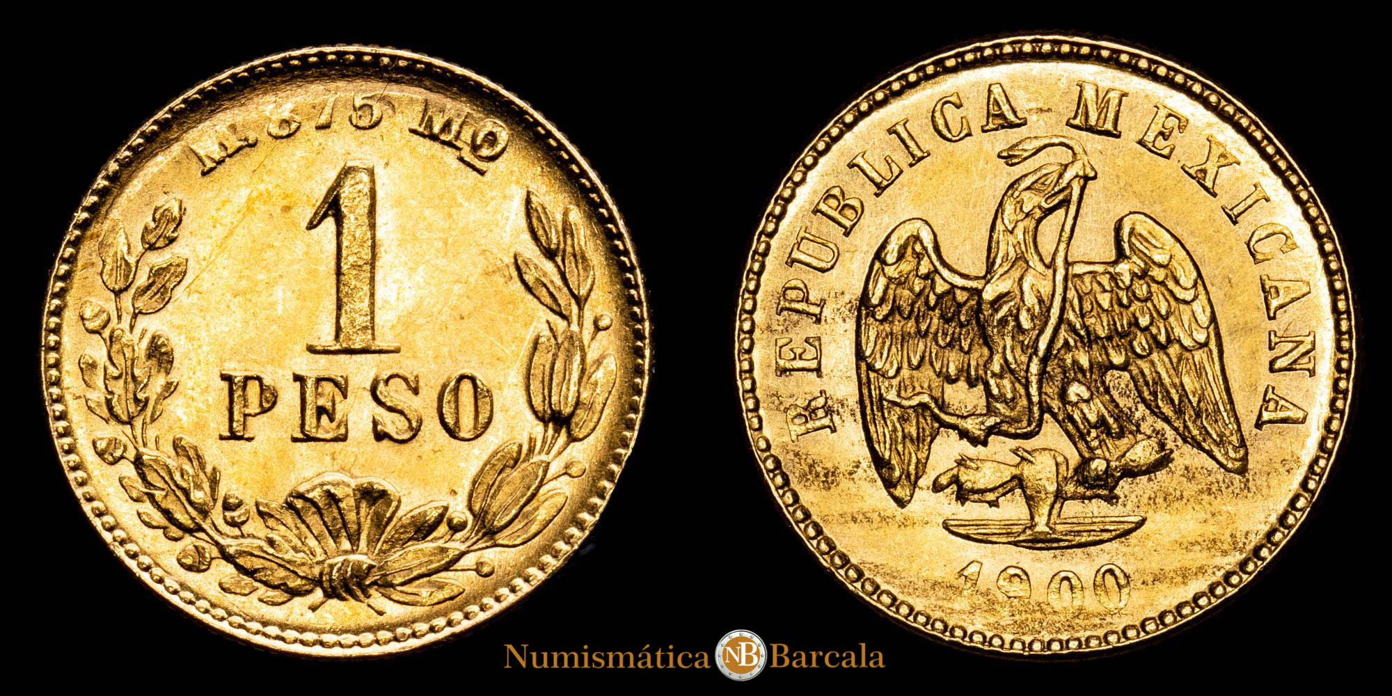 México. 1 Peso. (1,69 g.). México. 1900. KM-410.5. SC. Brillo original