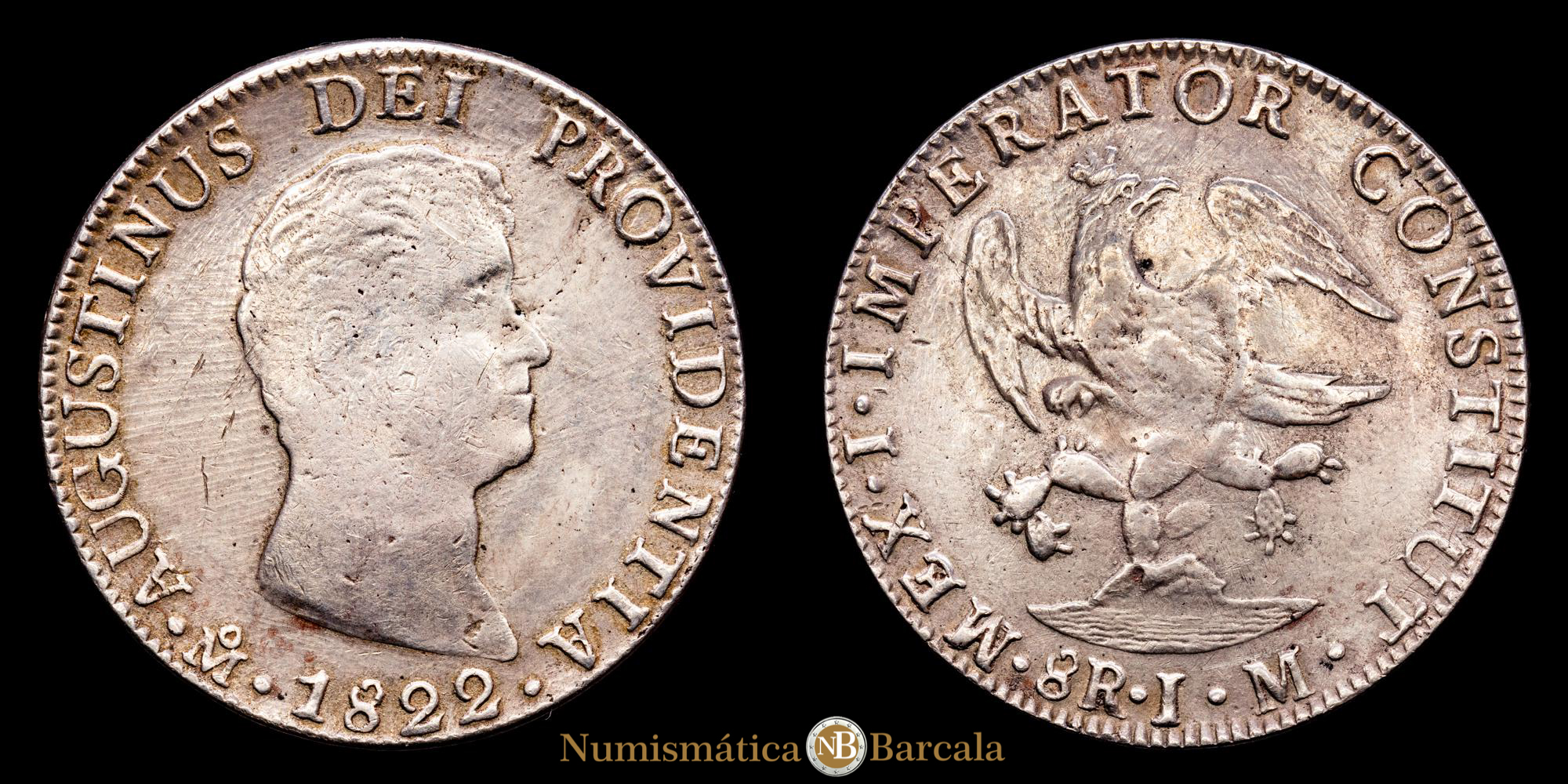 Numismática Barcala > Productos > Monedas Mundiales > América Central > México > México – Agustin Iturbide. 8 Reales. (28,11 g.). México. 1822. Ensayador J·M. KM-308. MBC/MBC+. Escasa