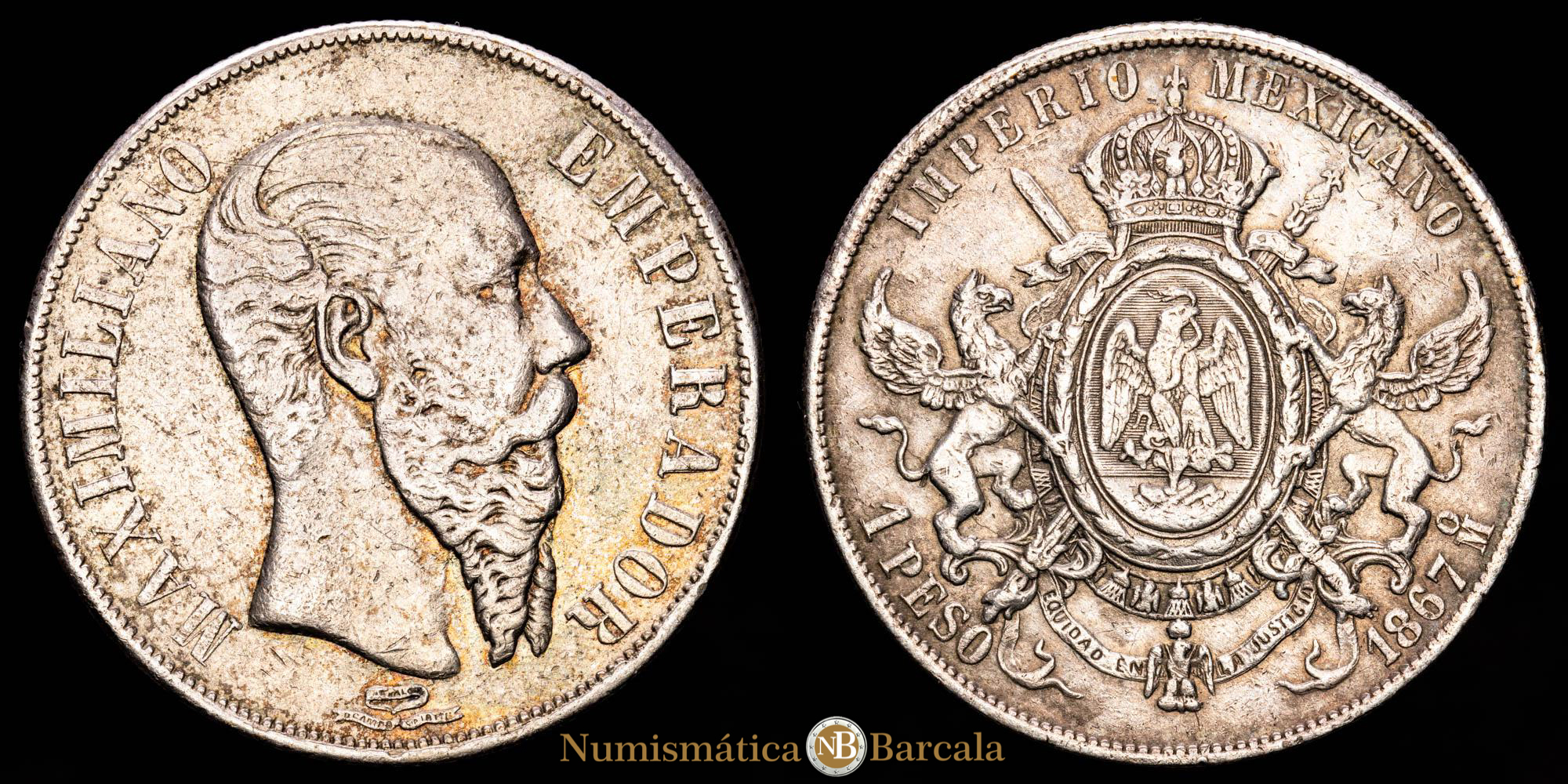 México – Maximiliano. 1 Peso. (26,87 g.). México. 1857. KM-388.1. VF-.