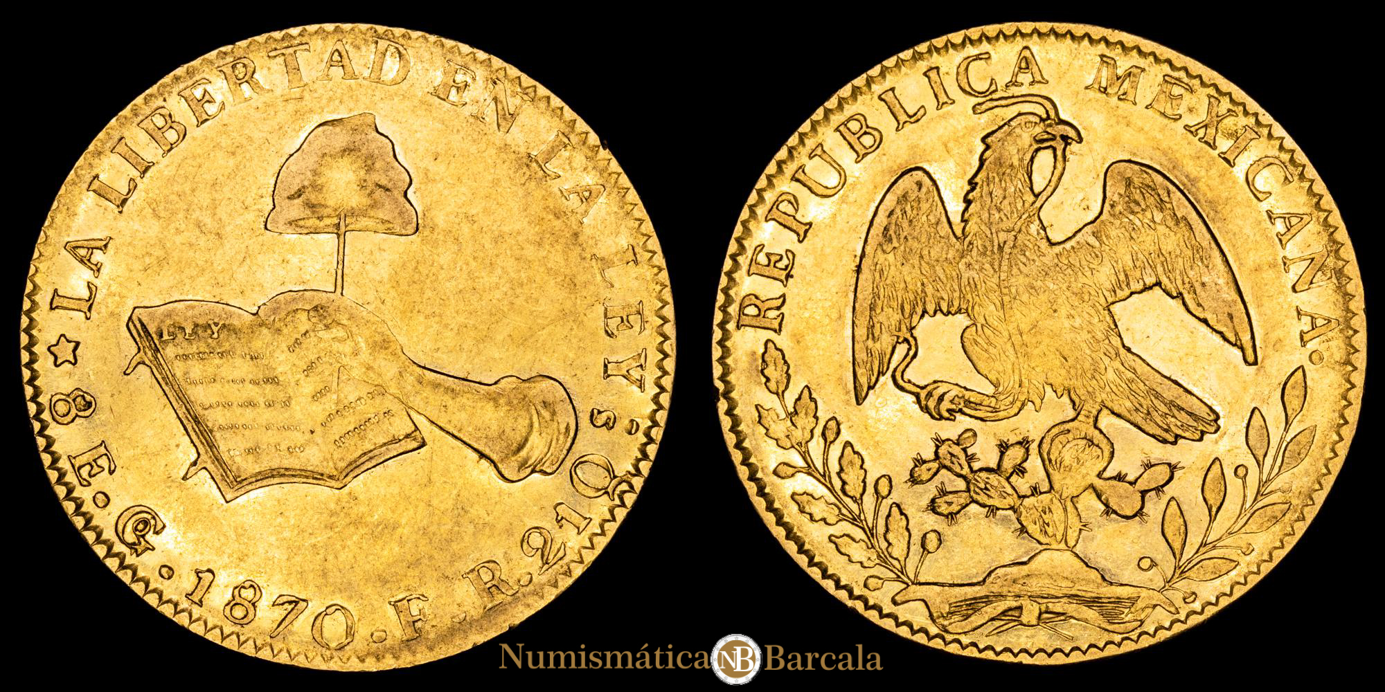 Numismática Barcala > Productos > Monedas Mundiales > América Central > México > México – República. 8 Escudos. (26,99g.). Guanajuato. 1870. Ensayador F·R. EBC.