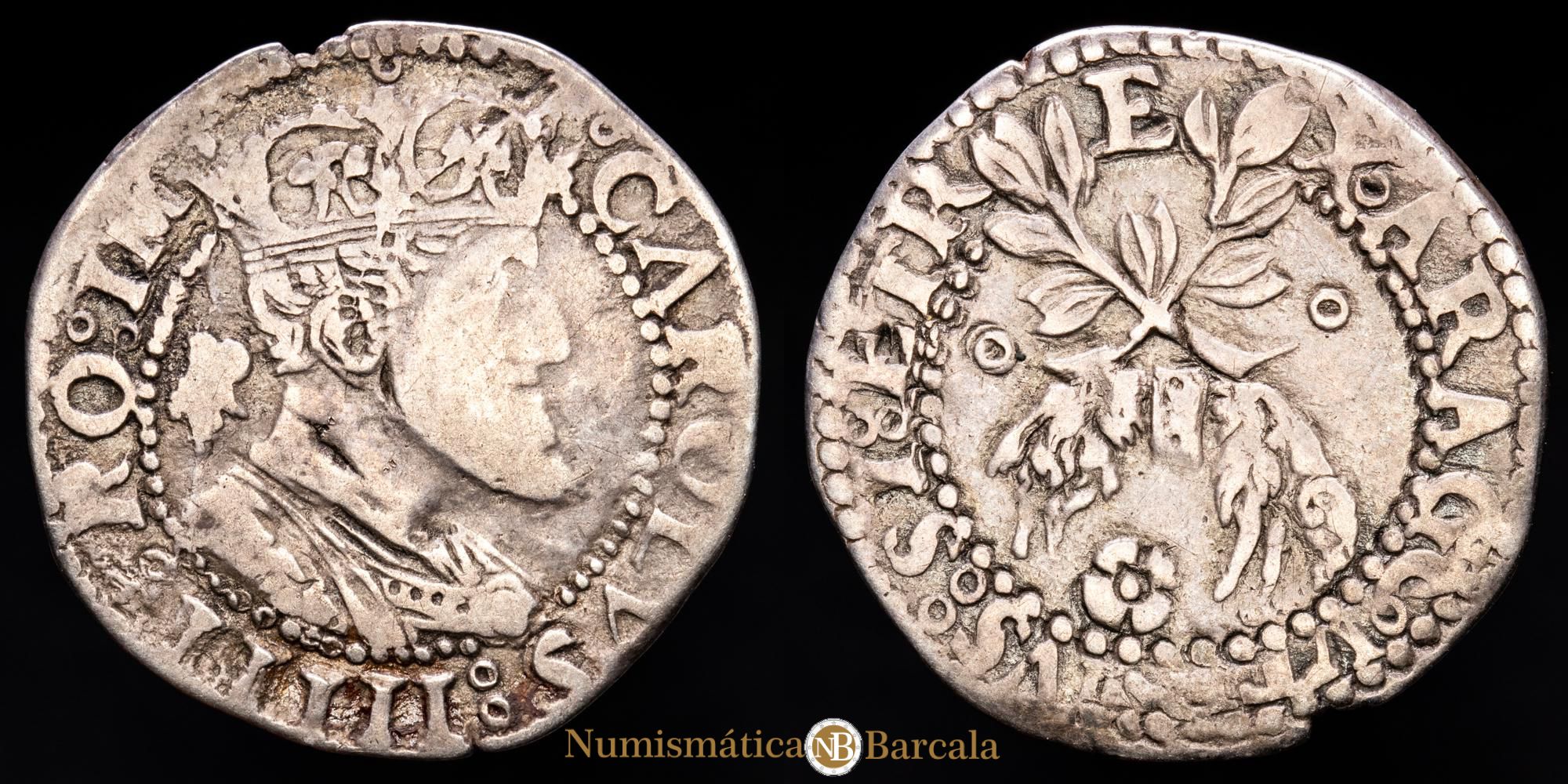 Nápoles – Carlos V. Carlino. (2,77 g.). Nápoles. 1516-1556. Ensayador R. MIR-148/2. VF+. Rara