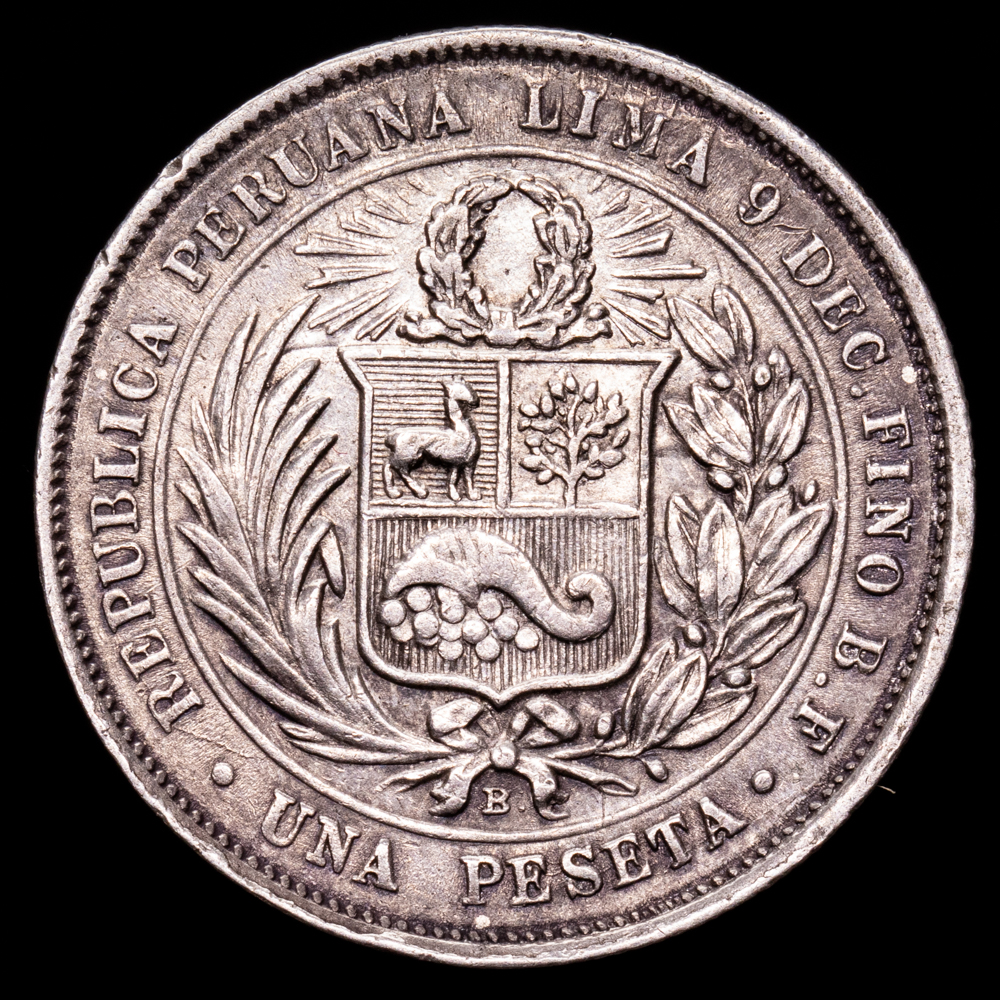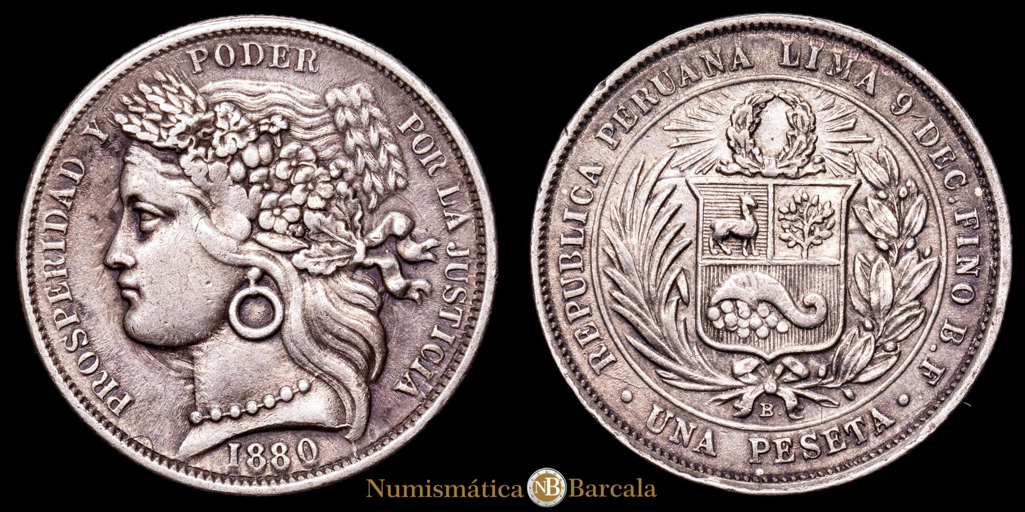 Numismática Barcala > Productos > Monedas Mundiales > America Sur > Perú > Perú. 1 Peseta. (5,05 g.). Lima. 1880. KM-200.2. EBC-/EBC.