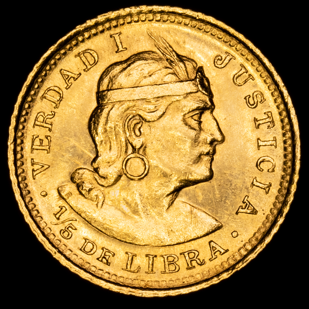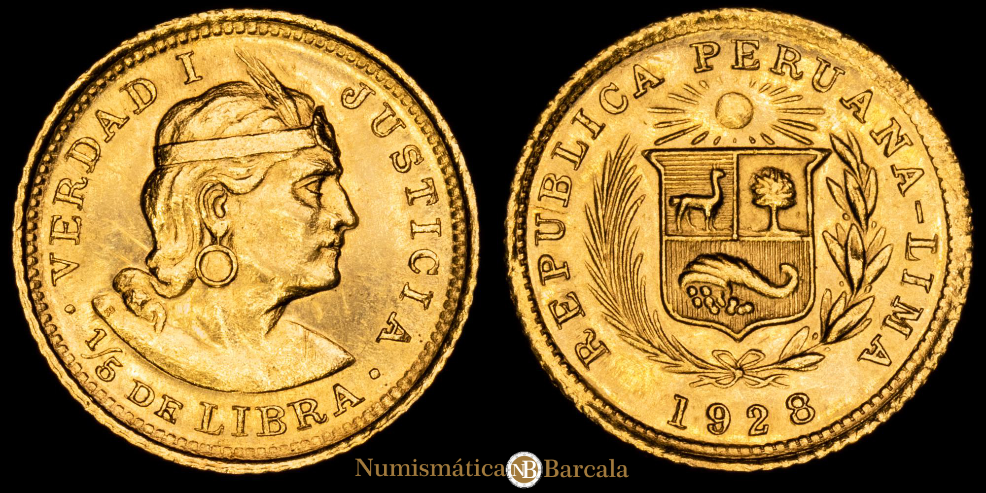 Numismática Barcala > Productos > Monedas Mundiales > America Sur > Perú > Perú – República Peruana. 1/5 Libra. (1,6g.). 1928. KM-209. UNC- . ORD – 917