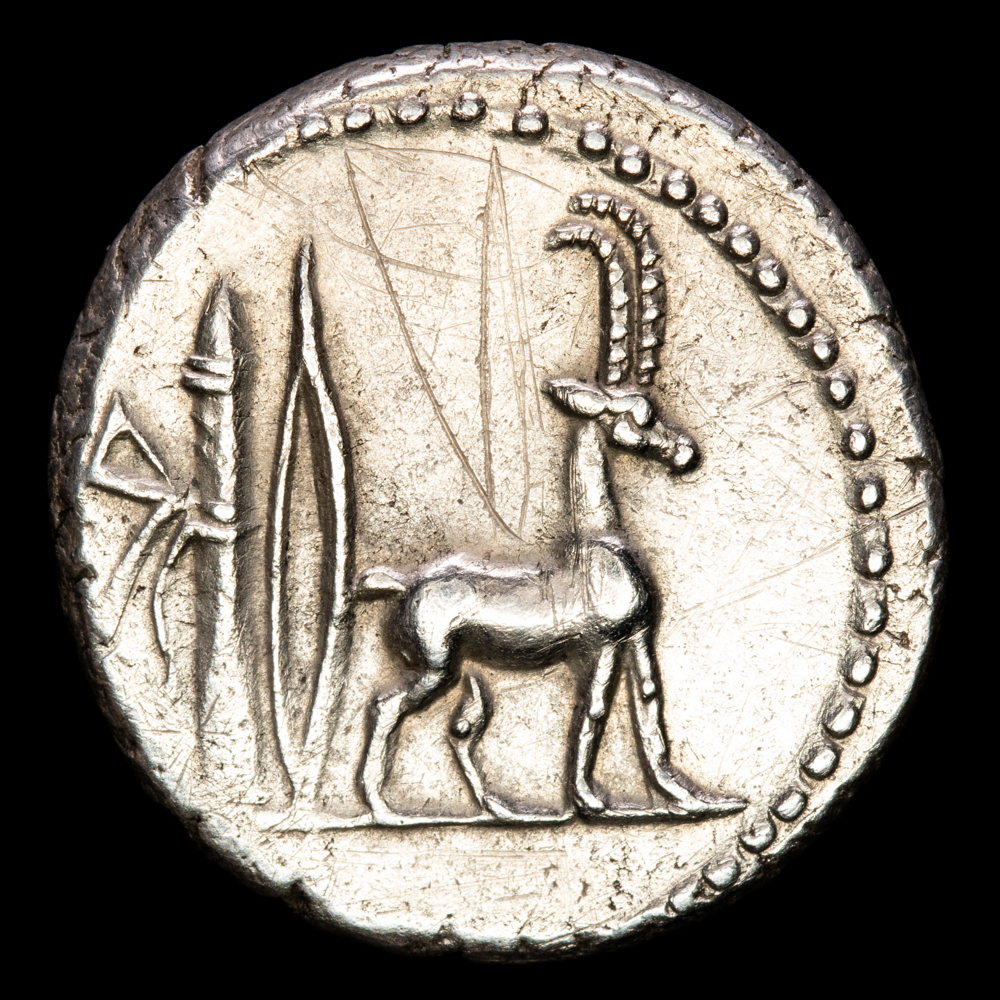 Plancius. Denario. (4g.). Roma. 55 a.C. FFC-991. XF-. CN. PLANCIVS DEA CVR. Cabra. Rayas en reverso.