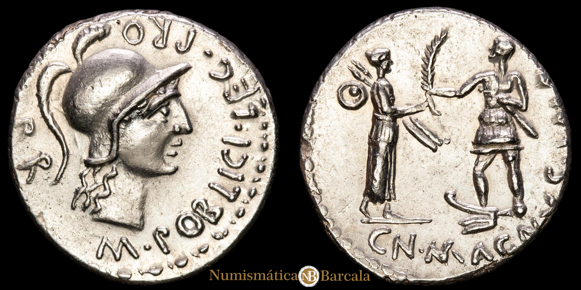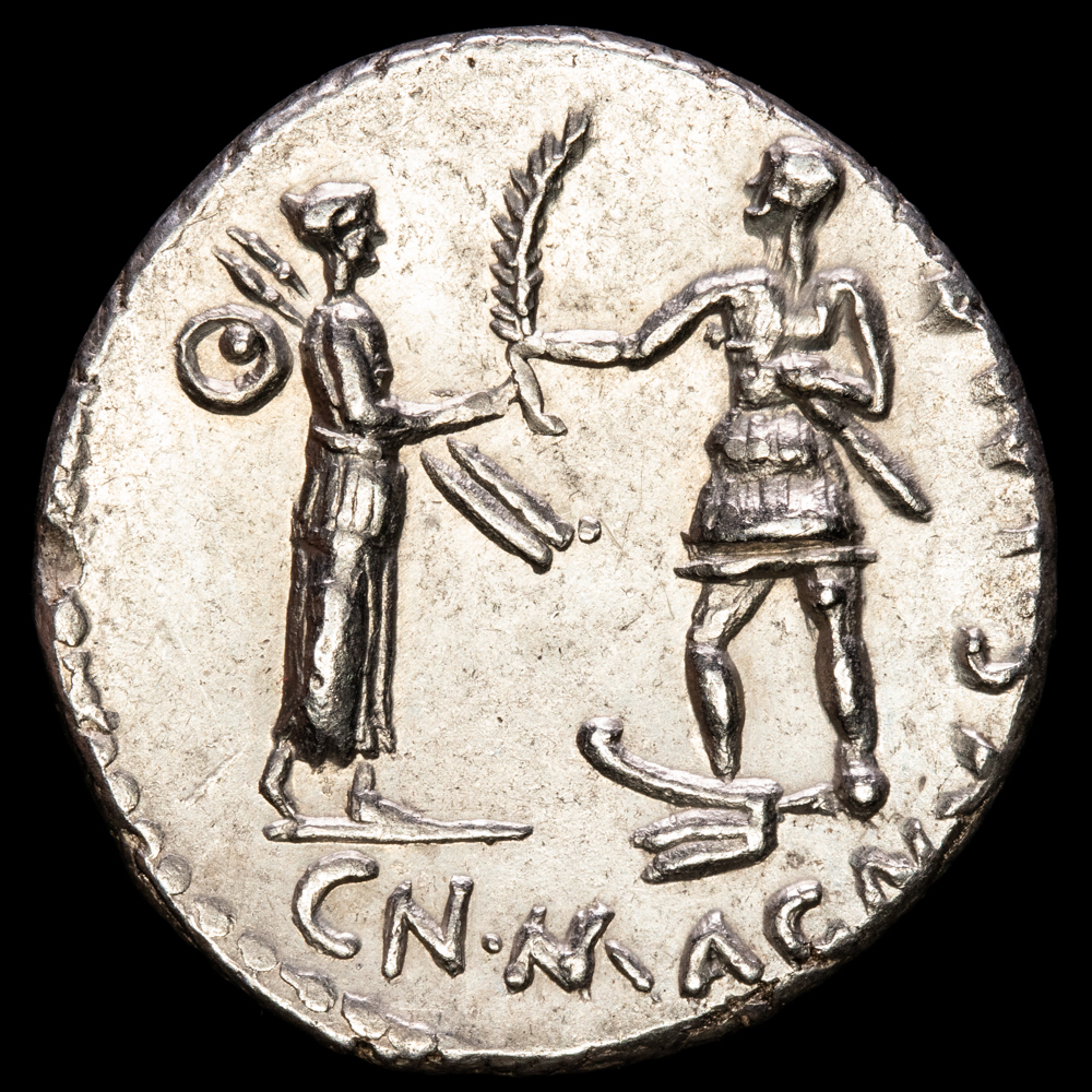 Numismática Barcala > Productos > Romanas > IMPERIO ROMANO > Pompeyo Magno. Denario de plata (3,95 g.). Hispania, 46-45 a.C. Craw-469/1c. UNC-. Excelente condición.