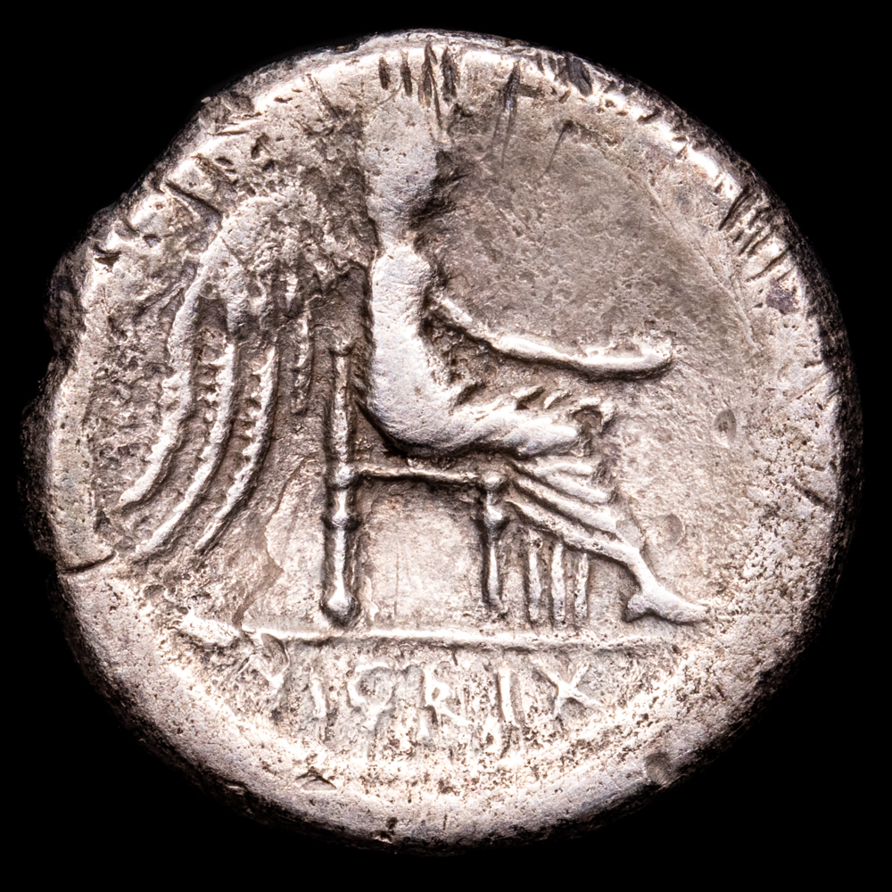 Valeria. Denario (3,87 g.). Galia, 82 a.C. Craw-356/1B. XF+. Águila legionaria entre dos estandartes.
