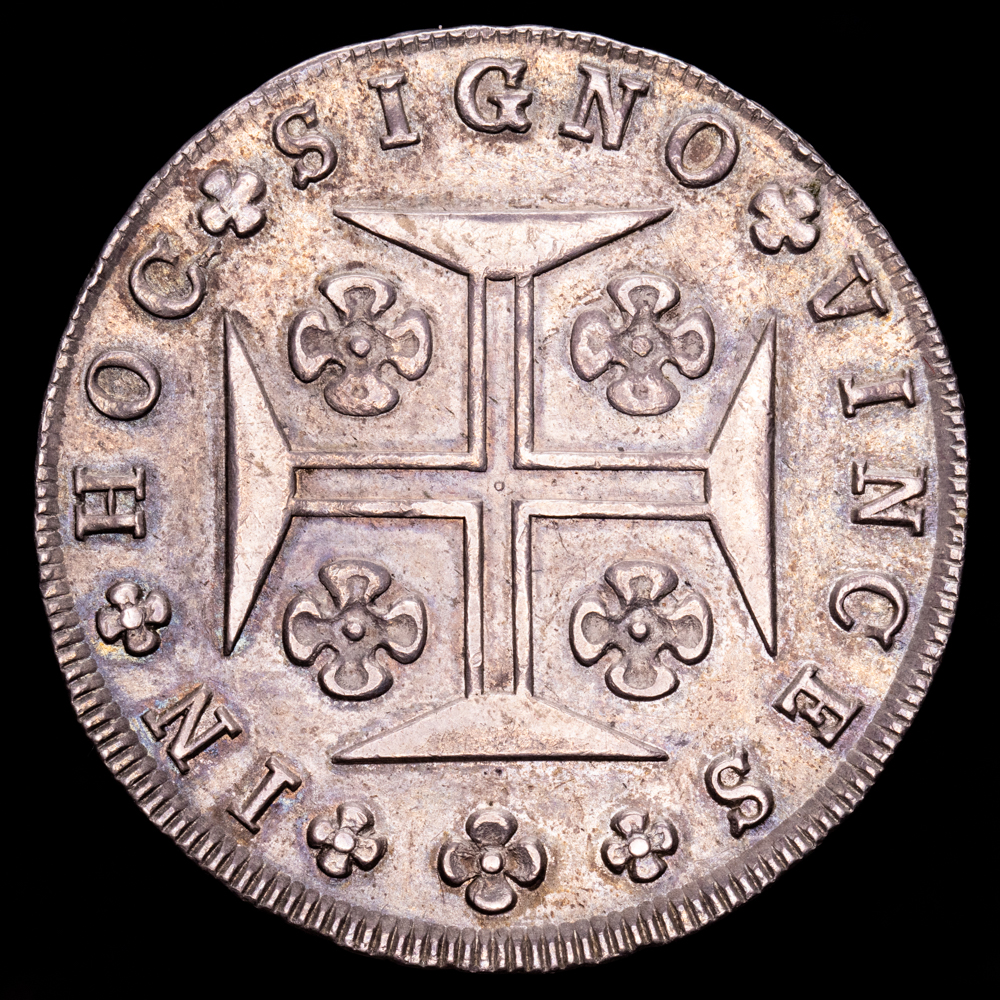 D. Alfonso VI. 600 Reis (8 Reales) (25,31 g.). N/D (1663). GOMEZ-40L. F. Acuñado sobre un 8 Reales. Muy raro.