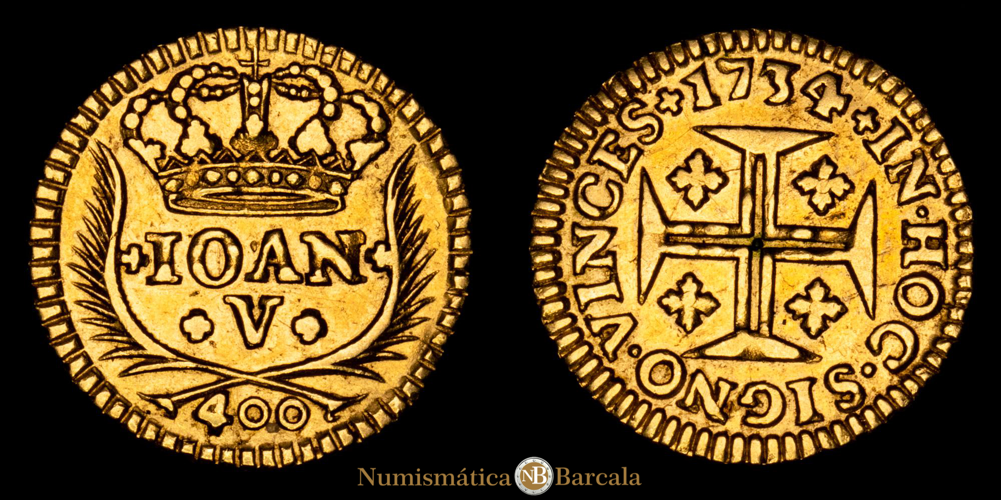 Numismática Barcala > Productos > Monedas Mundiales > Europa > Portugal > Portugal – Juan V. 400 Reis. (1,06 g.). Lisboa. 1734. Gomes-85.14. EBC-. Restos de brillo original.