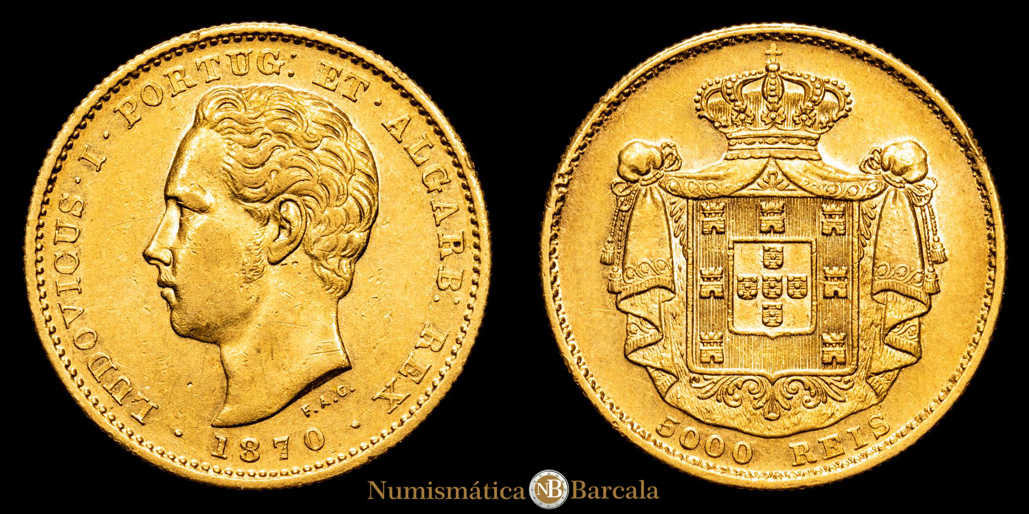 Numismática Barcala > Productos > Monedas Mundiales > Europa > Portugal > Portugal – Luis I. 5000 reis. (8,79 g.). 1870. Gomes 16.02. EBC/EBC+. Brillo original