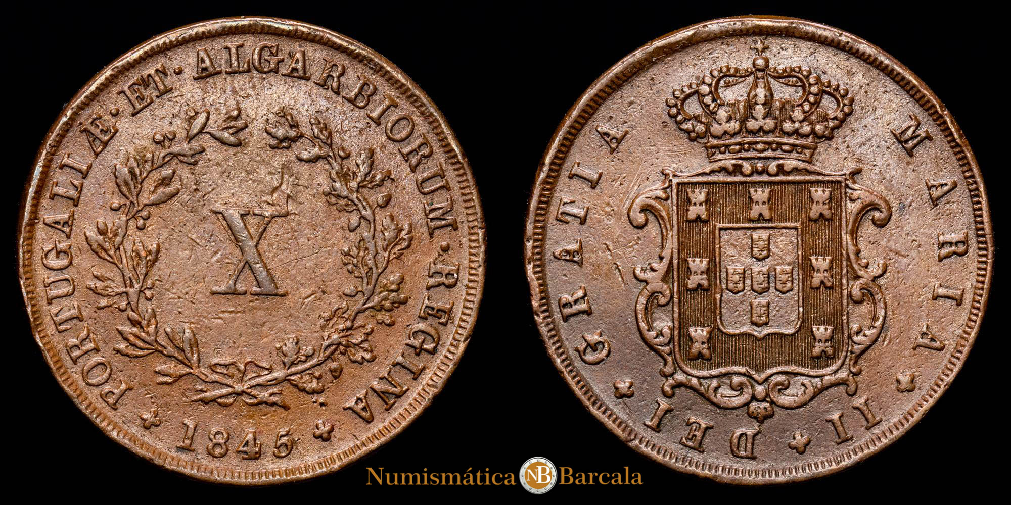 Numismática Barcala > Productos > Monedas Mundiales > Europa > Portugal > Portugal – Maria II. 10 Reis. (13,5 g.). 1845. KM-481. MBC+.
