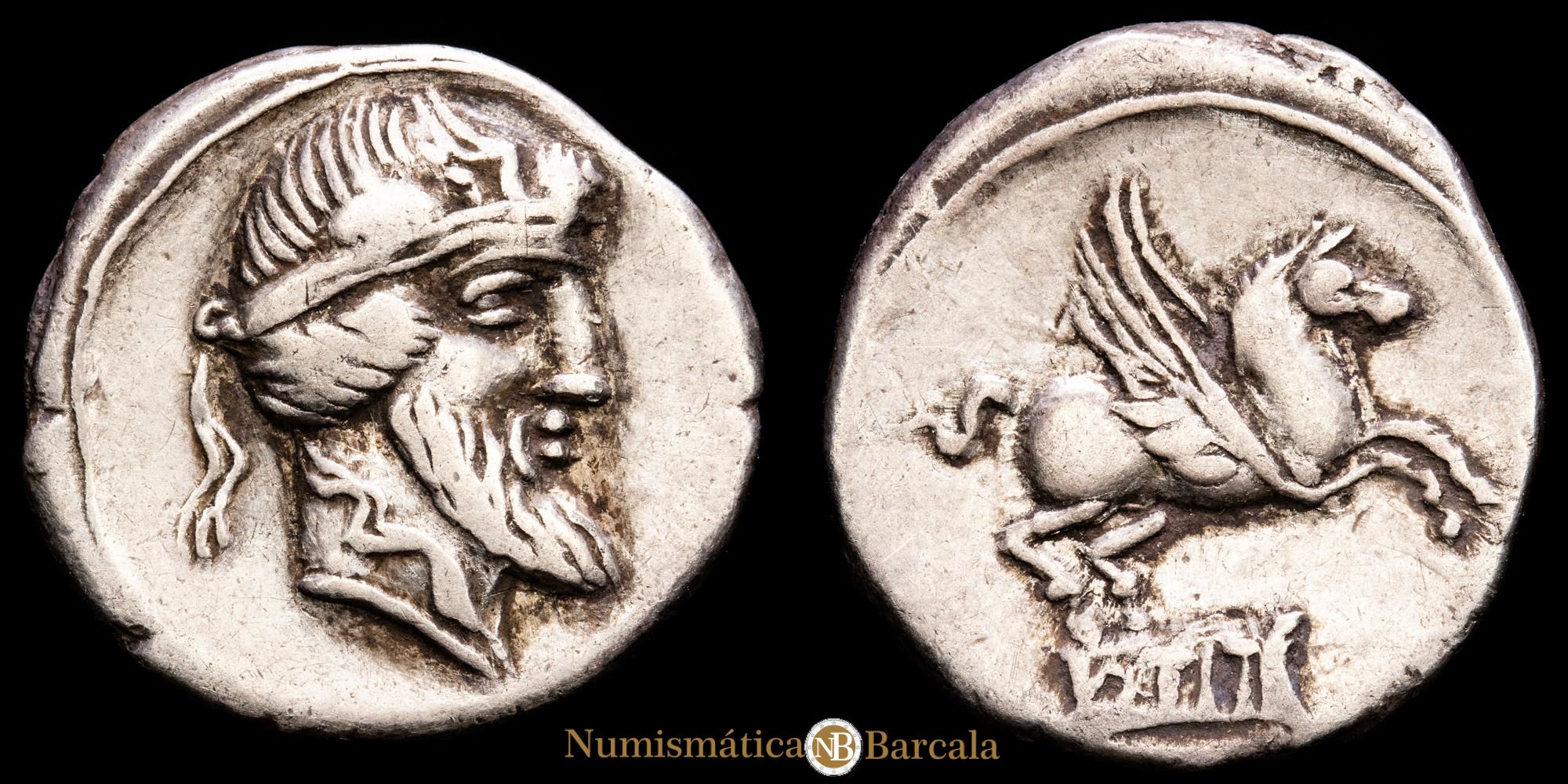 C. Vibius. Denario de plata (3,80 g.). Roma, 90 a.C. Craw-252/5b. VF+