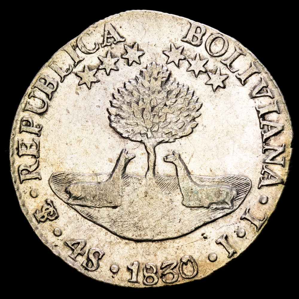 Numismática Barcala > Productos > Monedas Mundiales > America Sur > Bolivia > Republica Bolivia. 4 Soles. (13,58g.). Potosí. 1830. Ensayador J.L. KM-964.1. VF+.