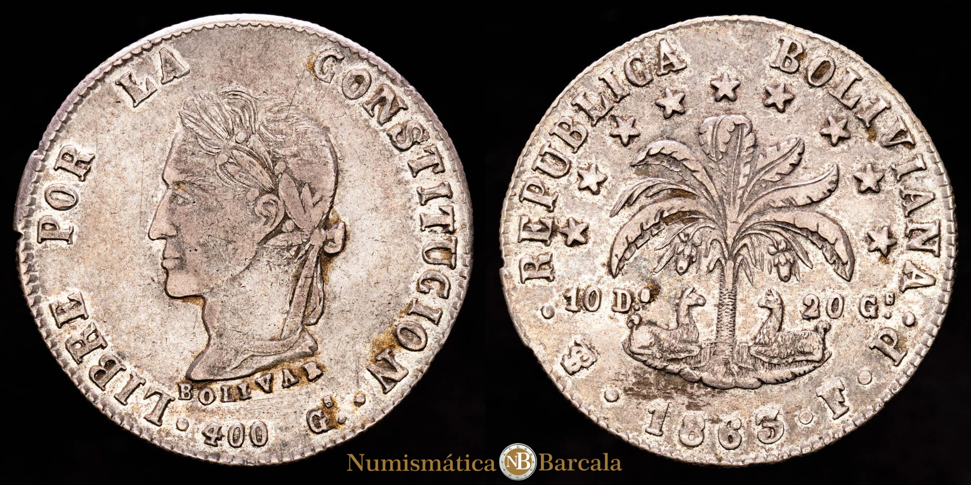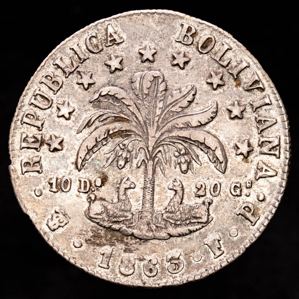 Numismática Barcala > Productos > Monedas Mundiales > America Sur > Bolivia > República de Bolivia. 8 Soles. (20,36 g.). Potosí. 1863. Ensayador F·P. KM-138.6. VF.