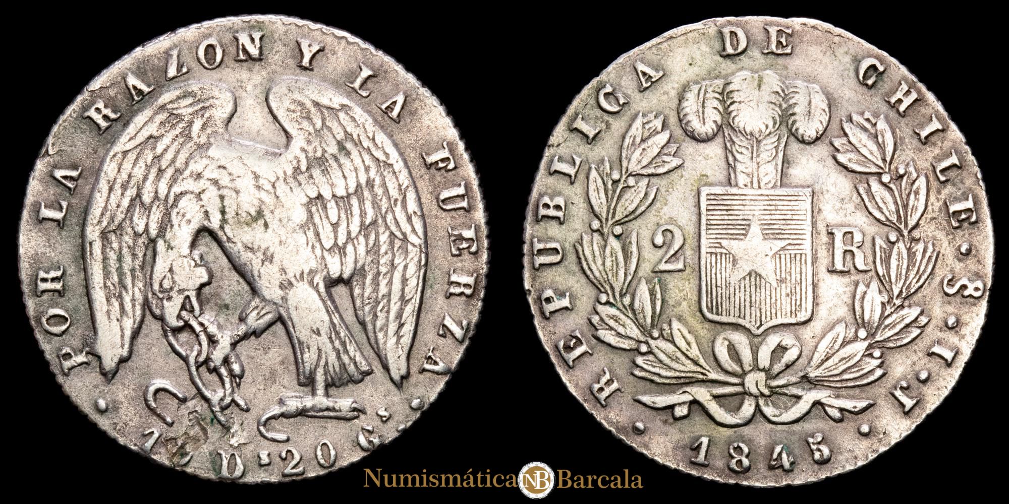 República de Chile – 2 Reales (5,79 g.). Santiago. 1845. KM-100.2. VF.