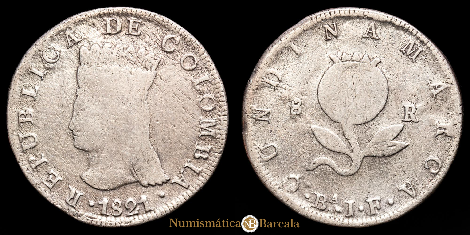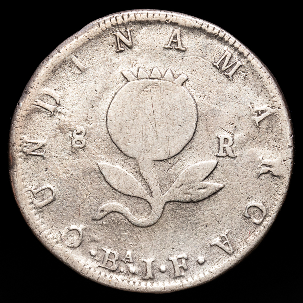 República de Colombia. 8 Reales. (22,68g.). Bogotá. 1821. KM-6. VF-. Rara.