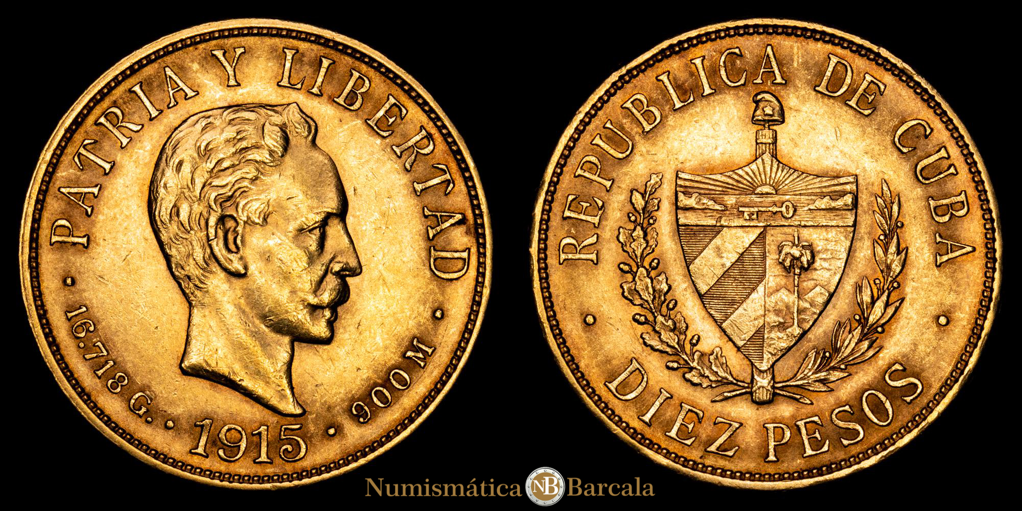 República de Cuba. 10 Pesos. (16,74 g.). Cuba. 1915. KM-20. XF+. Restos de brillo original.