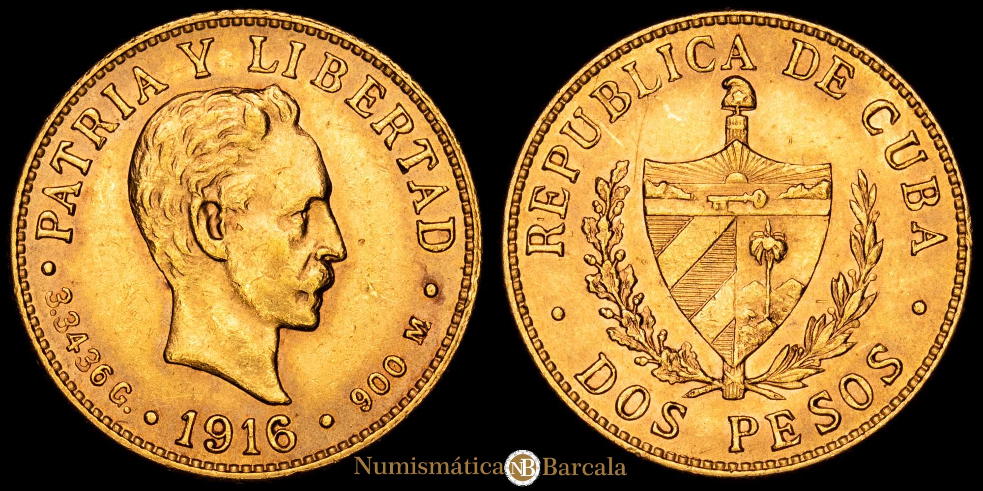 Numismática Barcala > Productos > Monedas Mundiales > America Sur > Cuba > República de Cuba. 2 Pesos (3,28 g.). 1916. KM-17. XF+.