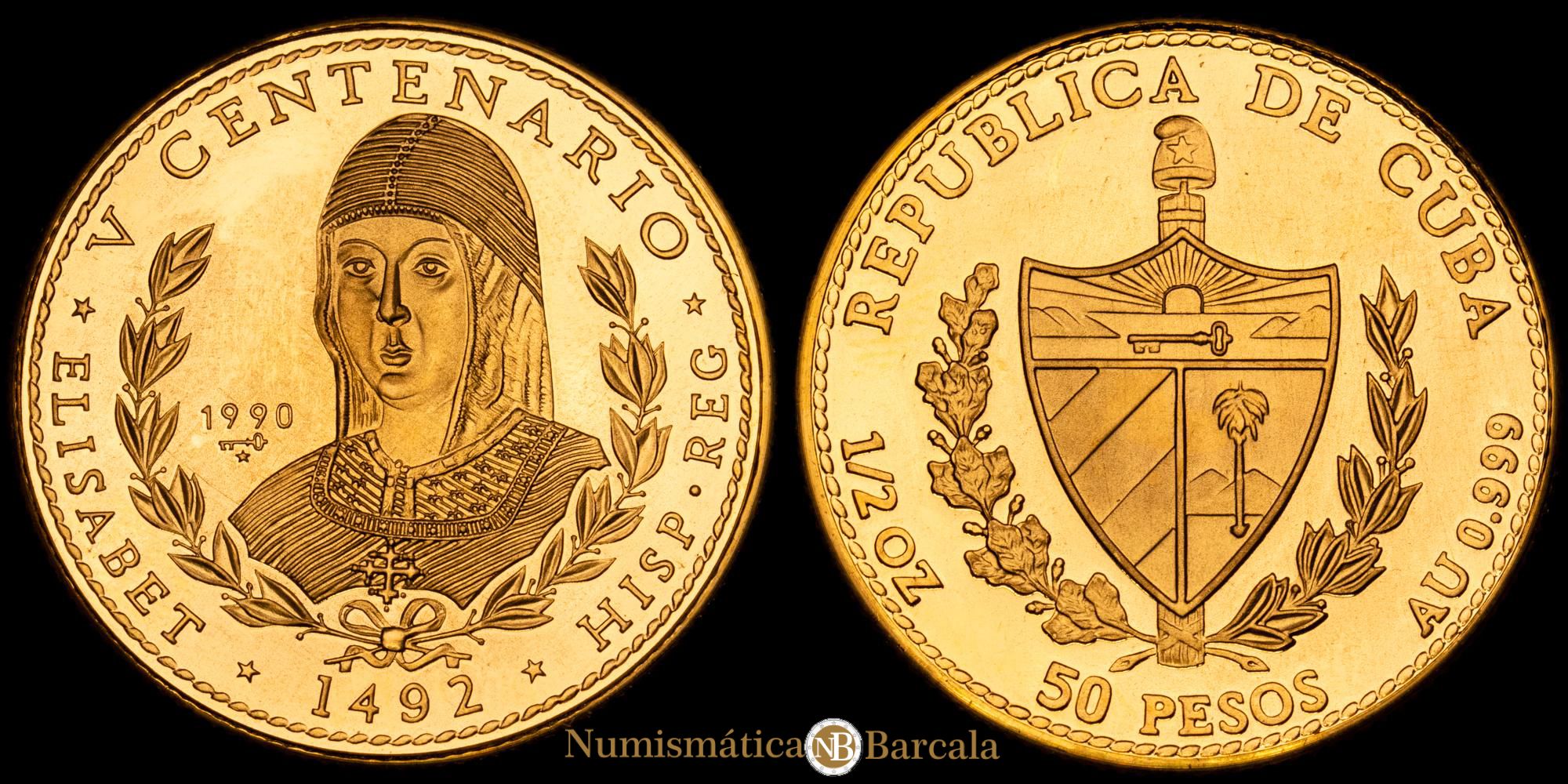 Numismática Barcala > Productos > Monedas Mundiales > America Sur > Cuba > República de Cuba. 50 Pesos (15,50 g.). 1990. KM-300. PROOF. Rara.