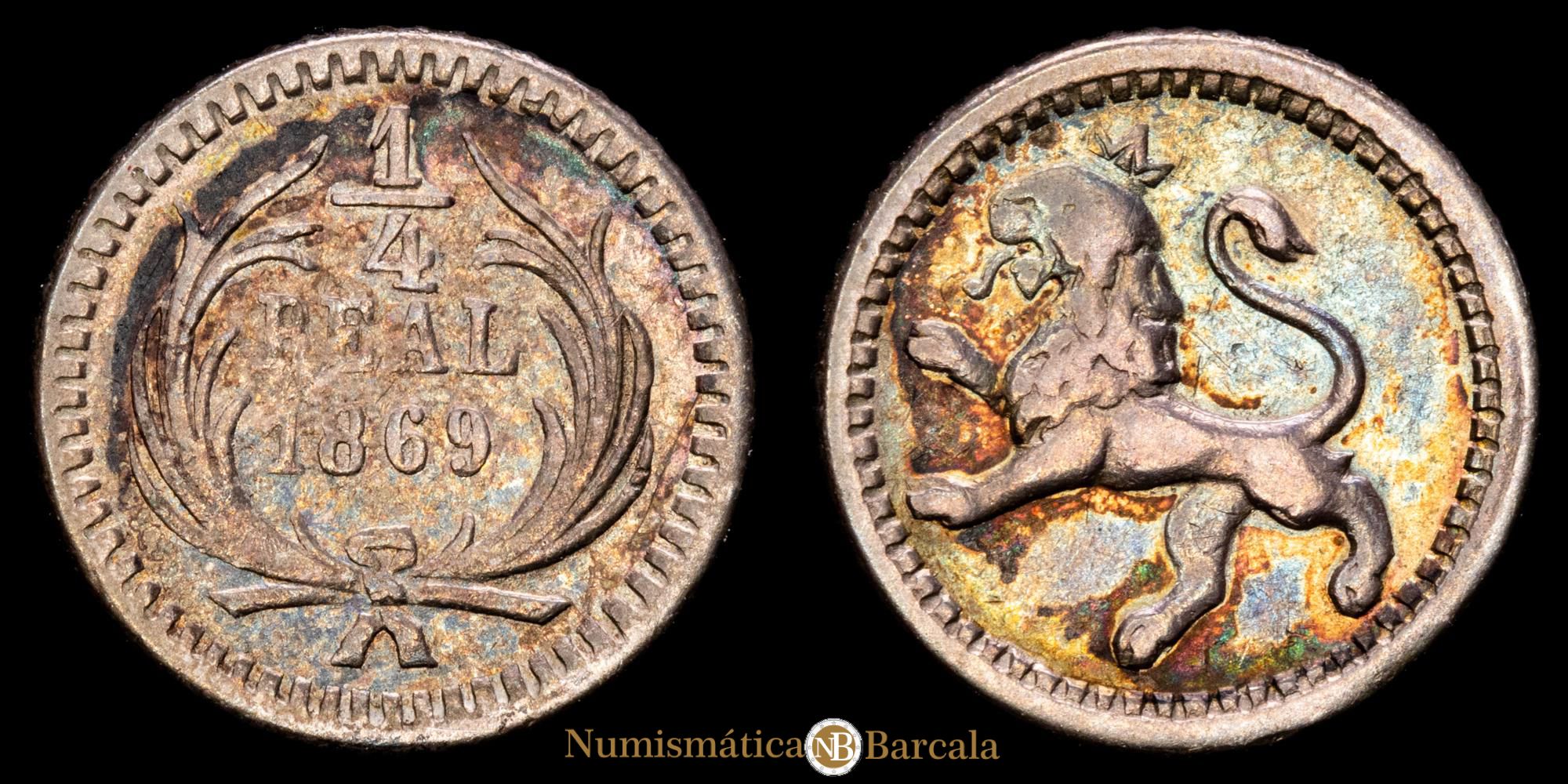 Numismática Barcala > Productos > Monedas Mundiales > América Central > Guatemala > República de Guatemala – 1/4 Real (0,78 g.). 1869. KM-130. XF.
