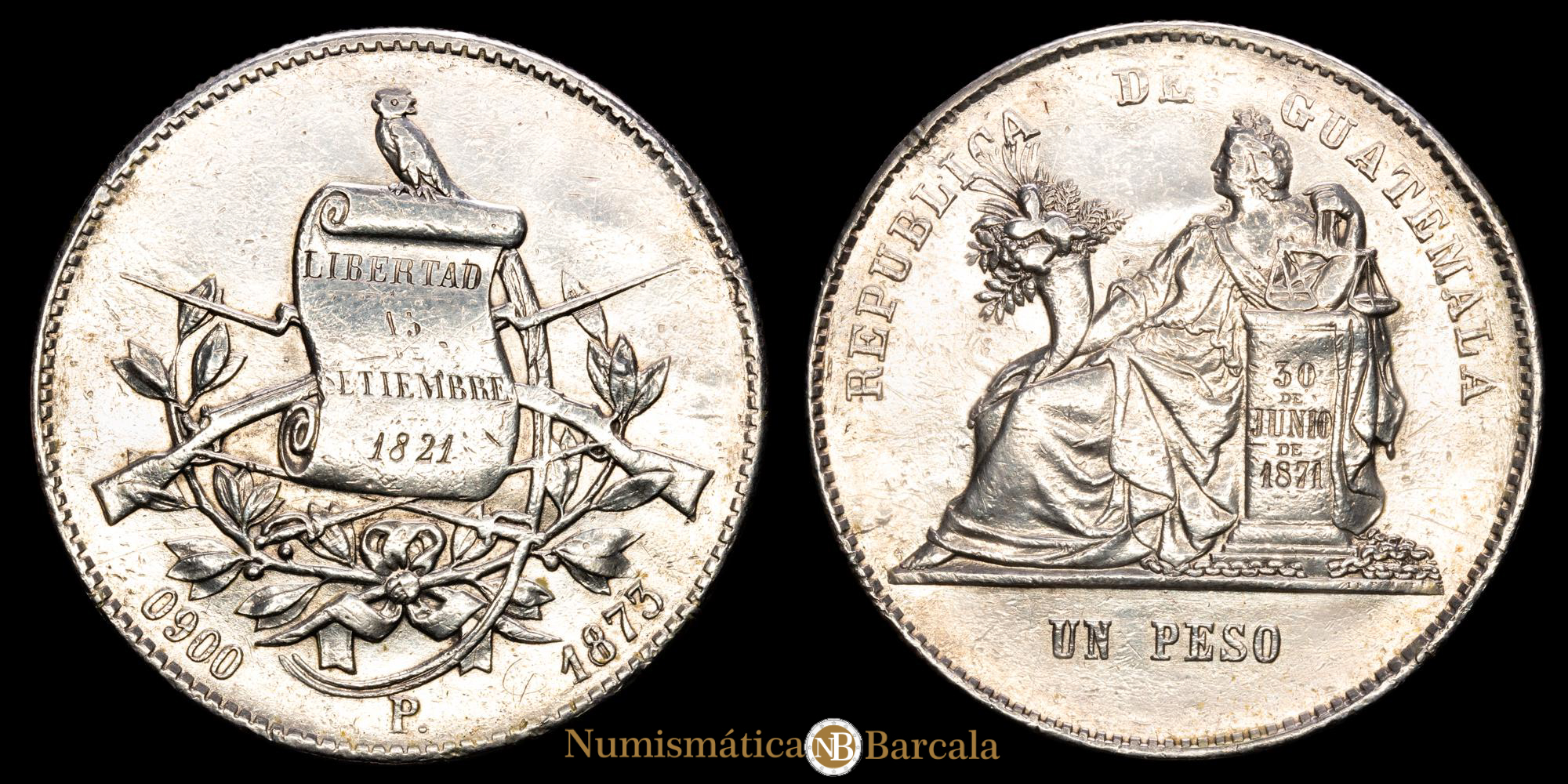 Republica de Guatemala. 1 Peso. (25,27g.). Guatemala. 1873. Ensayador P. KM-1971. VF.
