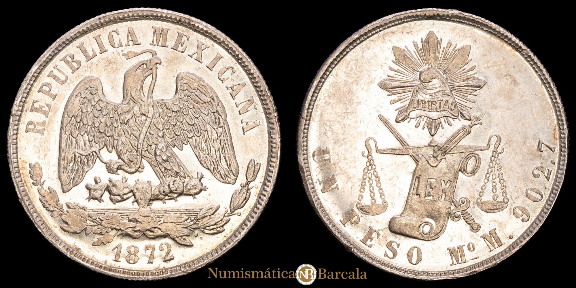 República de México. 1 Peso. México. 1872. KM-408.5. Perfecta condición.