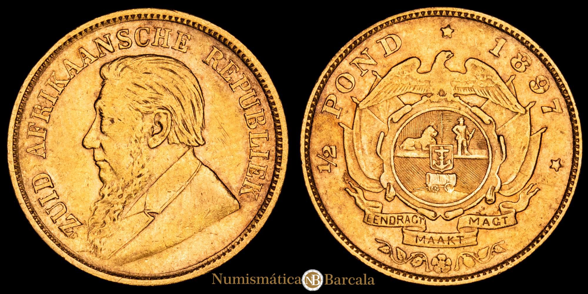 República de South Africa. 1/2 Pound (3,96 g.). 1897. KM-9.2. XF.