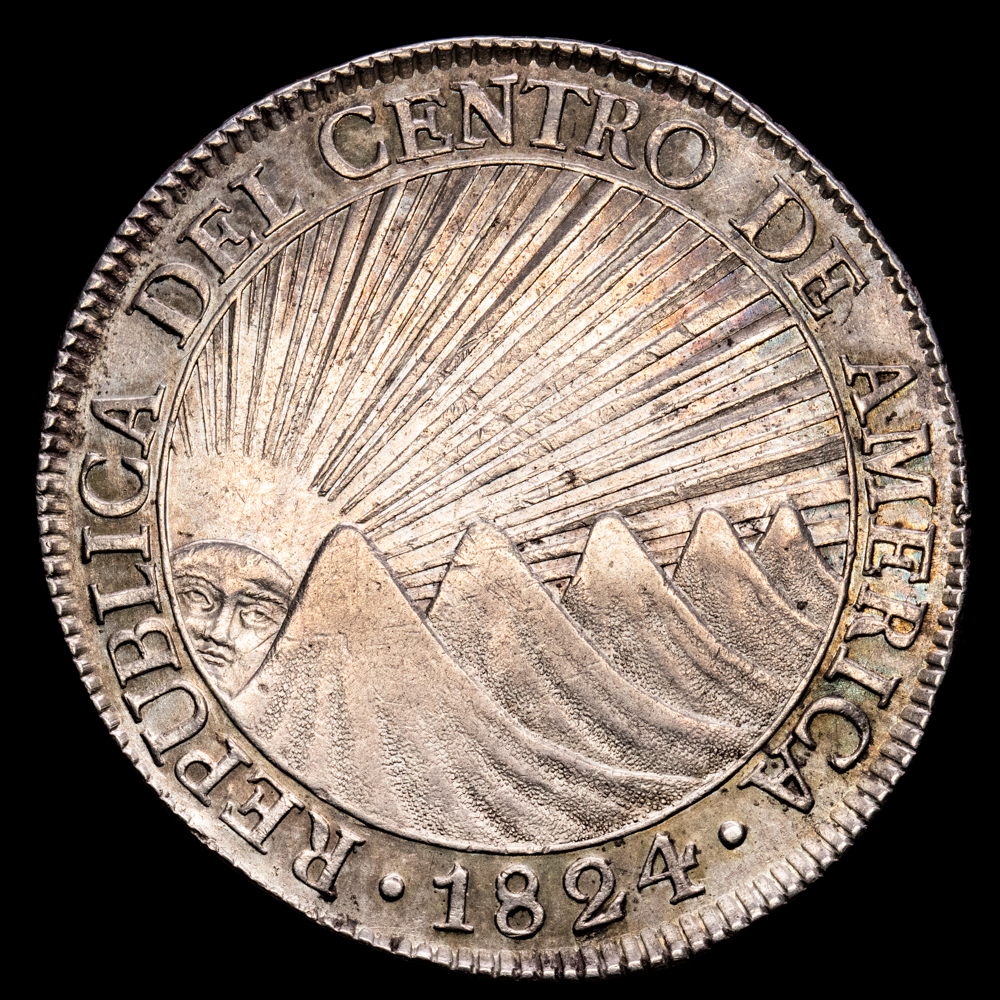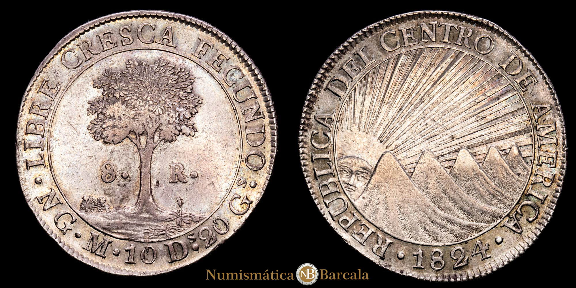 Numismática Barcala > Productos > Monedas Mundiales > América Central > Guatemala > República del Centro de América. 8 Reales. (26,95 g.). Guatemala. 1824. Ensayador M. KM-4. EBC-. Tono. Muy bella
