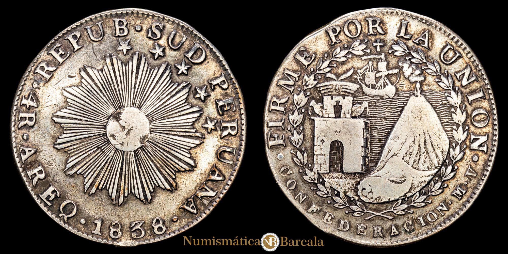 Numismática Barcala > Productos > Monedas Mundiales > America Sur > Perú > República del Perú. 4 Reales. (13,82g.). Arequipa. 1838. KM-172. MBC+.