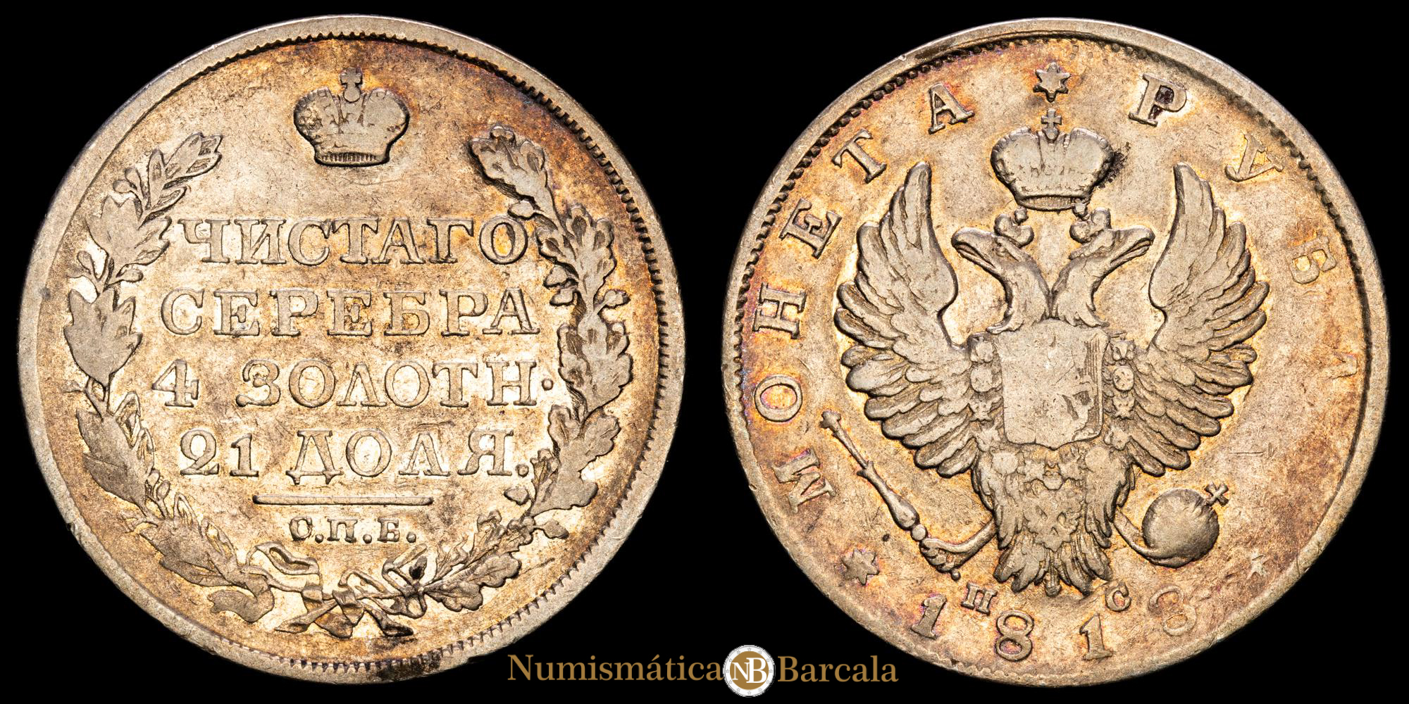 Numismática Barcala > Productos > Monedas Mundiales > Europa > Rusia > Rusia – Alejandro I. Rublo. (20,56g.). San Petesburgo. 1818. KM-C130. VF.