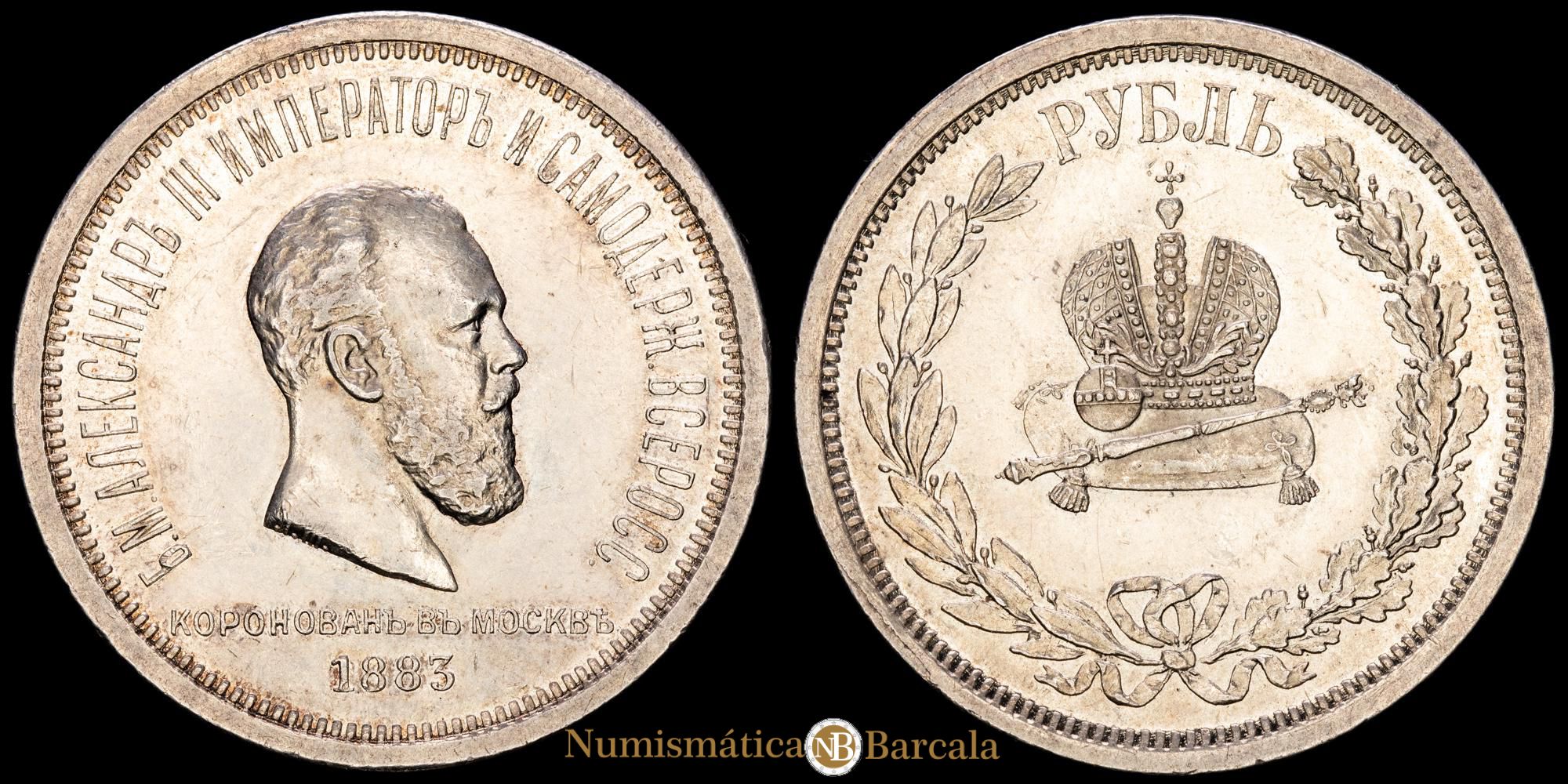 Numismática Barcala > Productos > Monedas Mundiales > Europa > Rusia > Rusia. Alejandro III. Rublo (20,76 g.). San Petesburgo. 1883. KM-43. XF+. Brillo original.