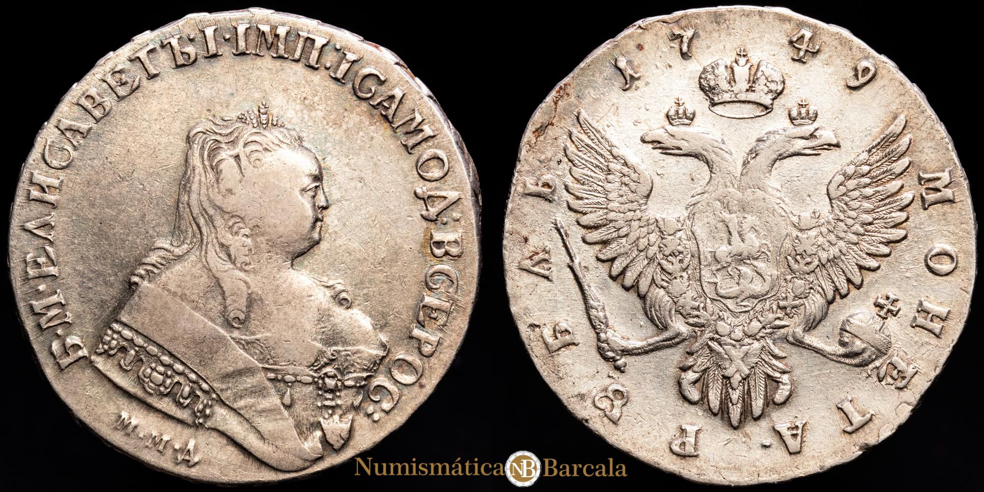 Numismática Barcala > Productos > Monedas Mundiales > Europa > Rusia > Rusia – Elizabet. Rublo. (26,26 g.). Sant Petersburgo. 1749. DAV:1679. VF+.