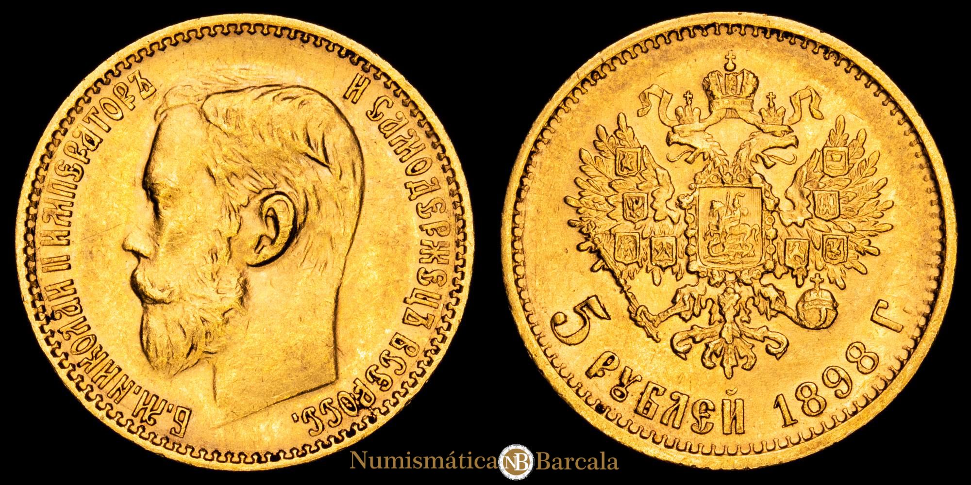 Numismática Barcala > Productos > Monedas Mundiales > Europa > Rusia > Rusia. Nicolas II. 5 Rublos (4,29 g.). 1898. KM-Y-62. XF. Restos de brillo original.