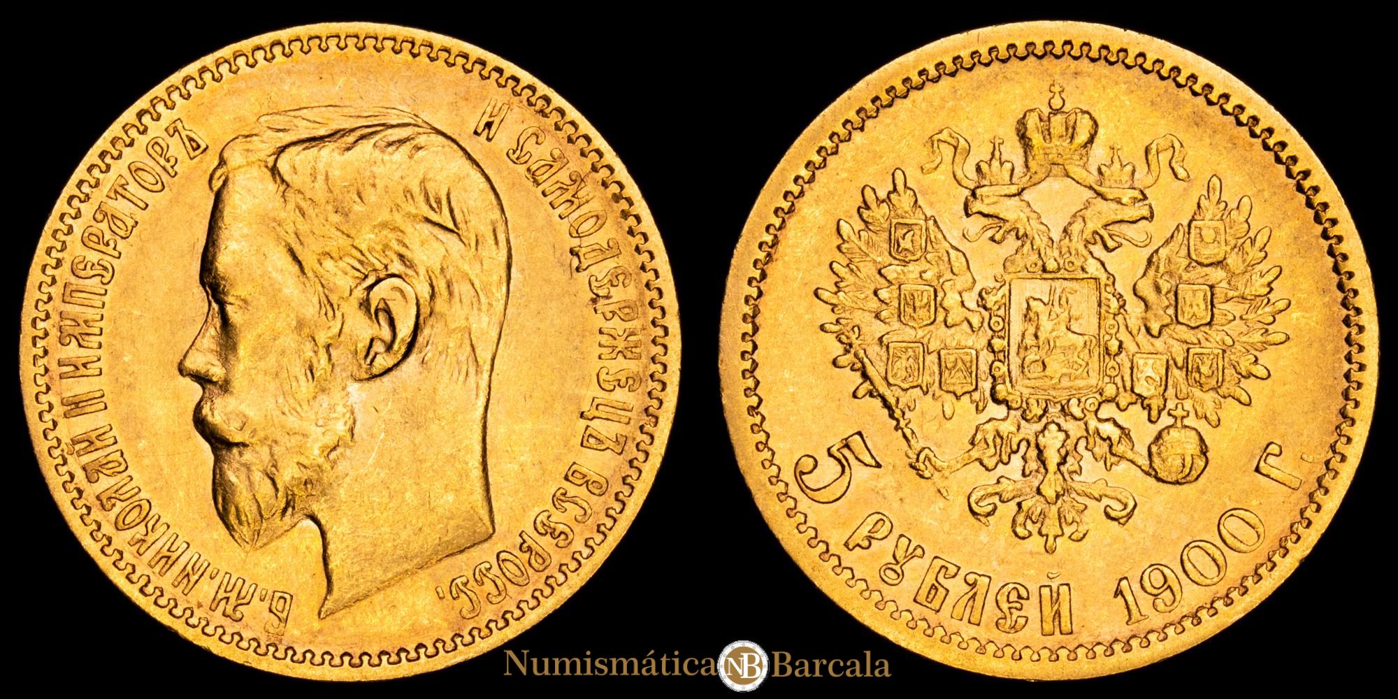 Numismática Barcala > Productos > Monedas Mundiales > Europa > Rusia > Rusia. Nicolas II. 5 Rublos (4,31 g.). 1900. KM-Y-62. XF. Restos de brillo original.