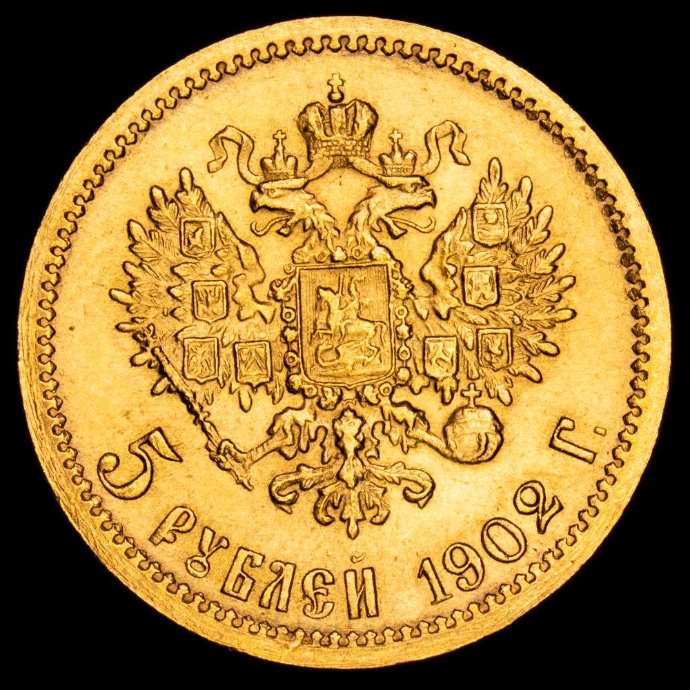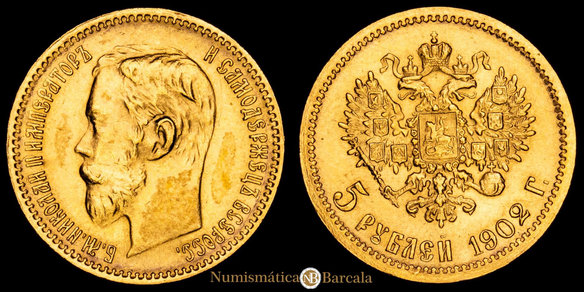 Numismática Barcala > Productos > Monedas Mundiales > Europa > Rusia > Rusia. Nicolas II. 5 Rublos (4,31 g.). 1902. KM-Y-62. XF. Restos de brillo original.