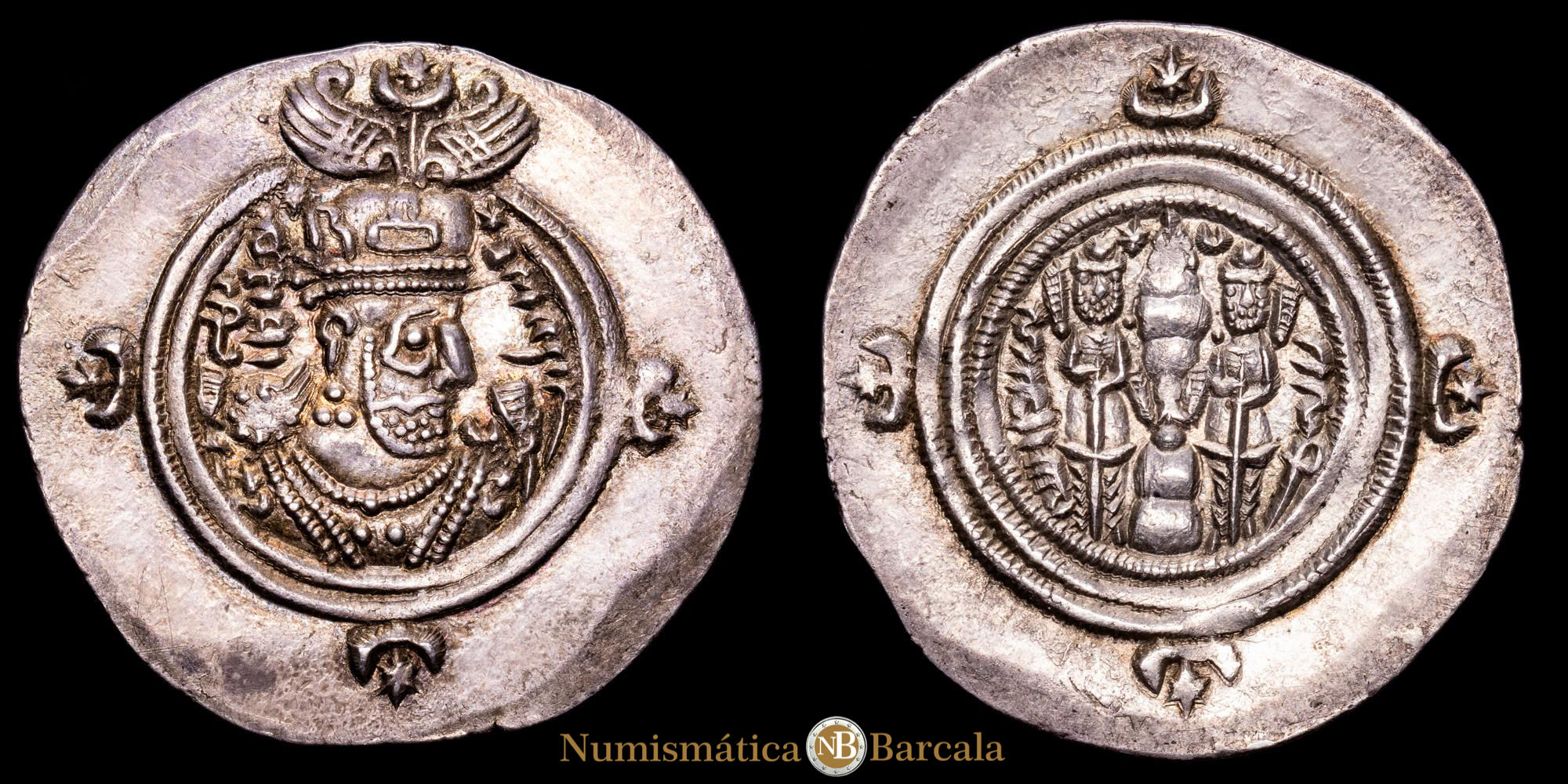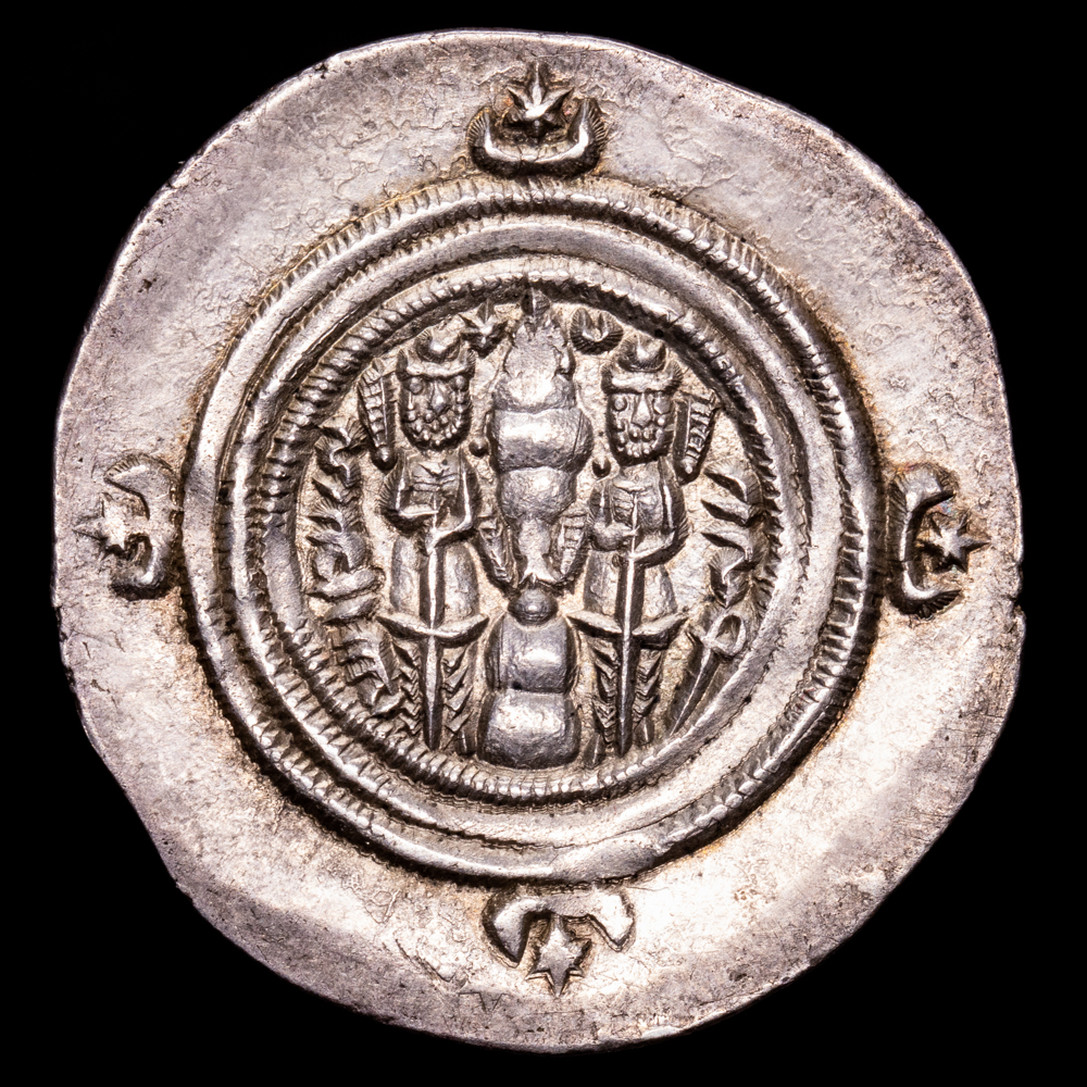 Sasanidas – Khusru. Dracma. (4,19 g.). (611-612 d.C.). Göbl-A/3. XF+. Pátina. Excelente condición