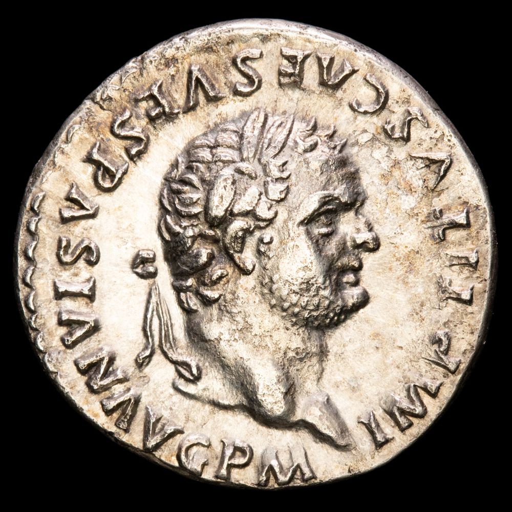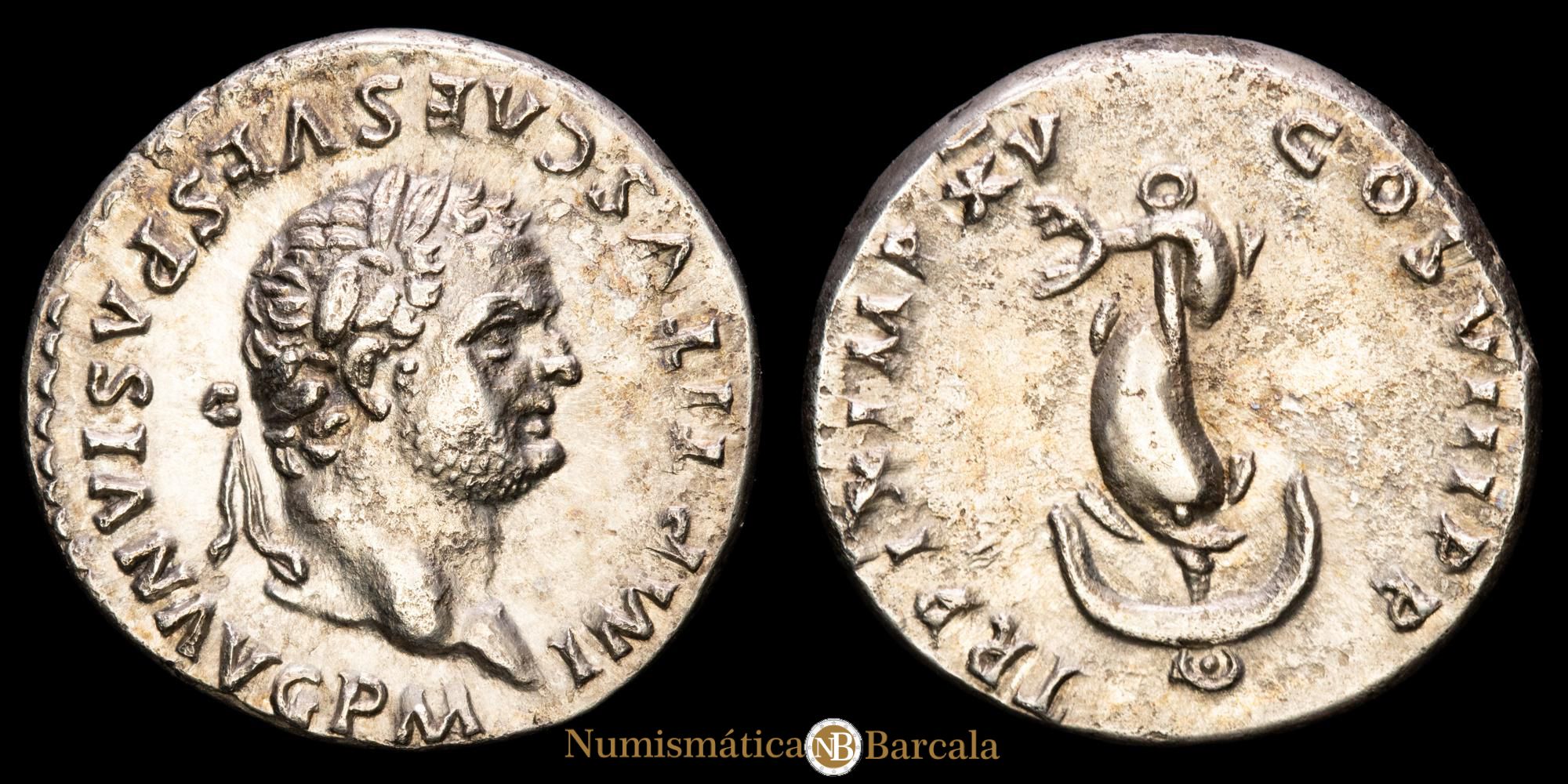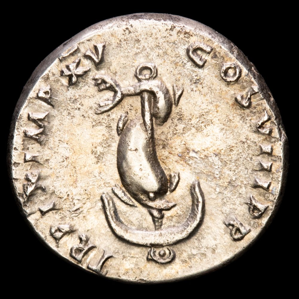 Tito. Denario (3,29 g.). Roma, 80 d.C. RIC-112. Delfín sobre ancla. EBC.