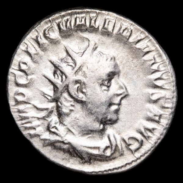 Trajano Decio híbrido con reverso de Filipo I (RIC 41). Antoniniano de plata (4,55 g.). Roma. PAX AETERN. Muy raro. EBC