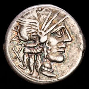 Anónimo. Denario. (3,78g.). Roma. 167-155 a.C. Craw-116/1. VF. Muy rara. Marca de ceca: Toro