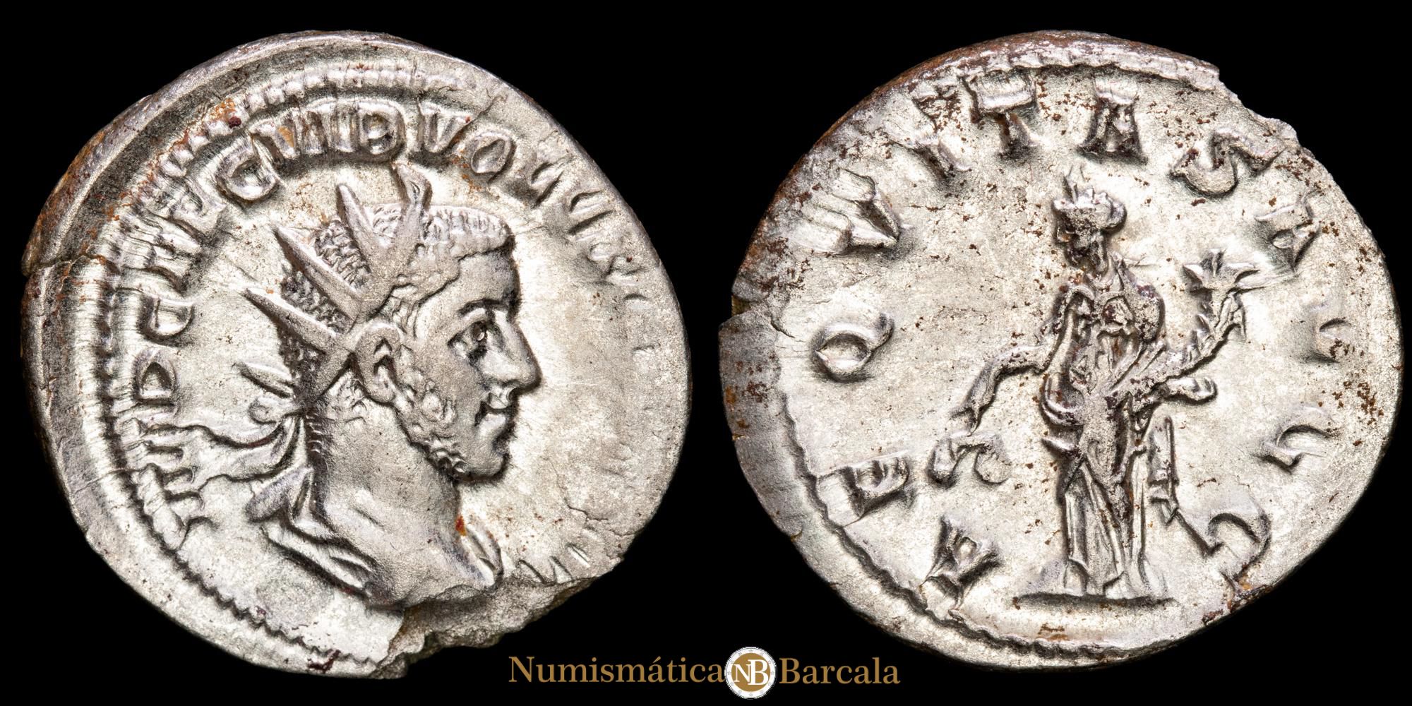 Volusiano. Antoniniano. (3,25 g.). Roma, 251-253 d.C. AEQVITAS AVGG. RIC 166. EBC+. Brillo original.