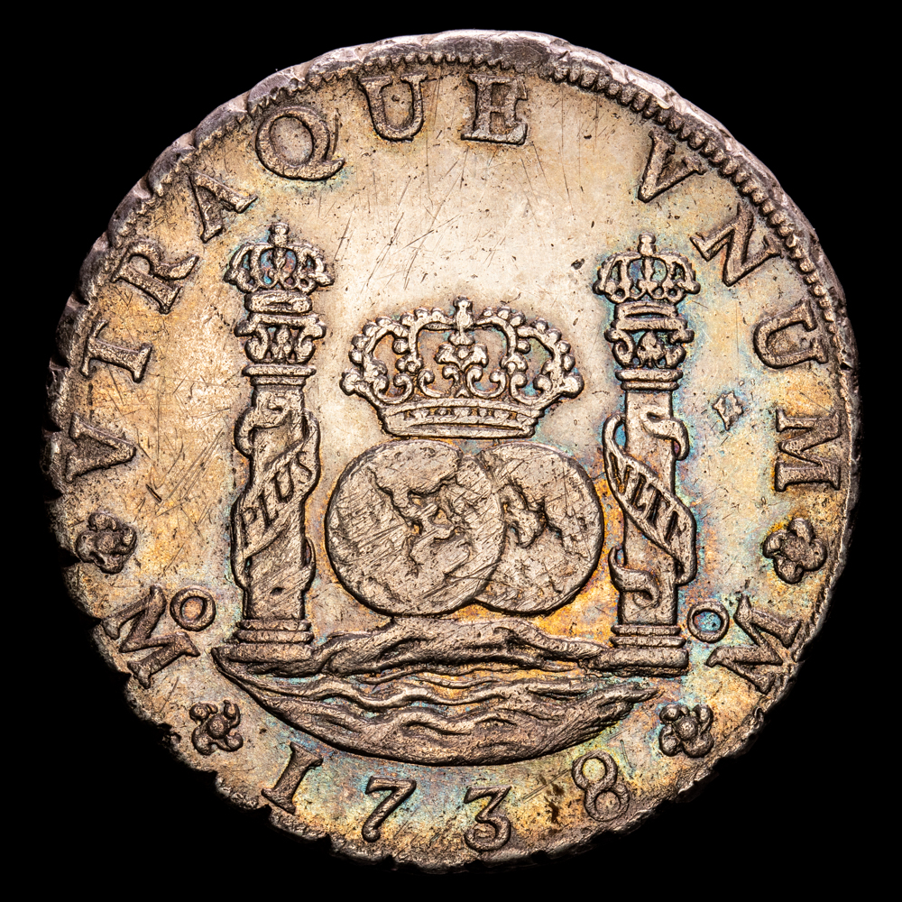 Felipe V. 8 Relaes. (26,63 g.). México. 1738. Ensayador M·F. AC-1449. MBC+. Tono.