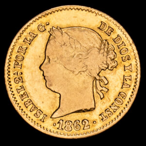 Isabel II. 2 Pesos. (3,39 g.). Manila (Filipinas). 1862. AC-837. MBC+. Brillo original. Escasa.