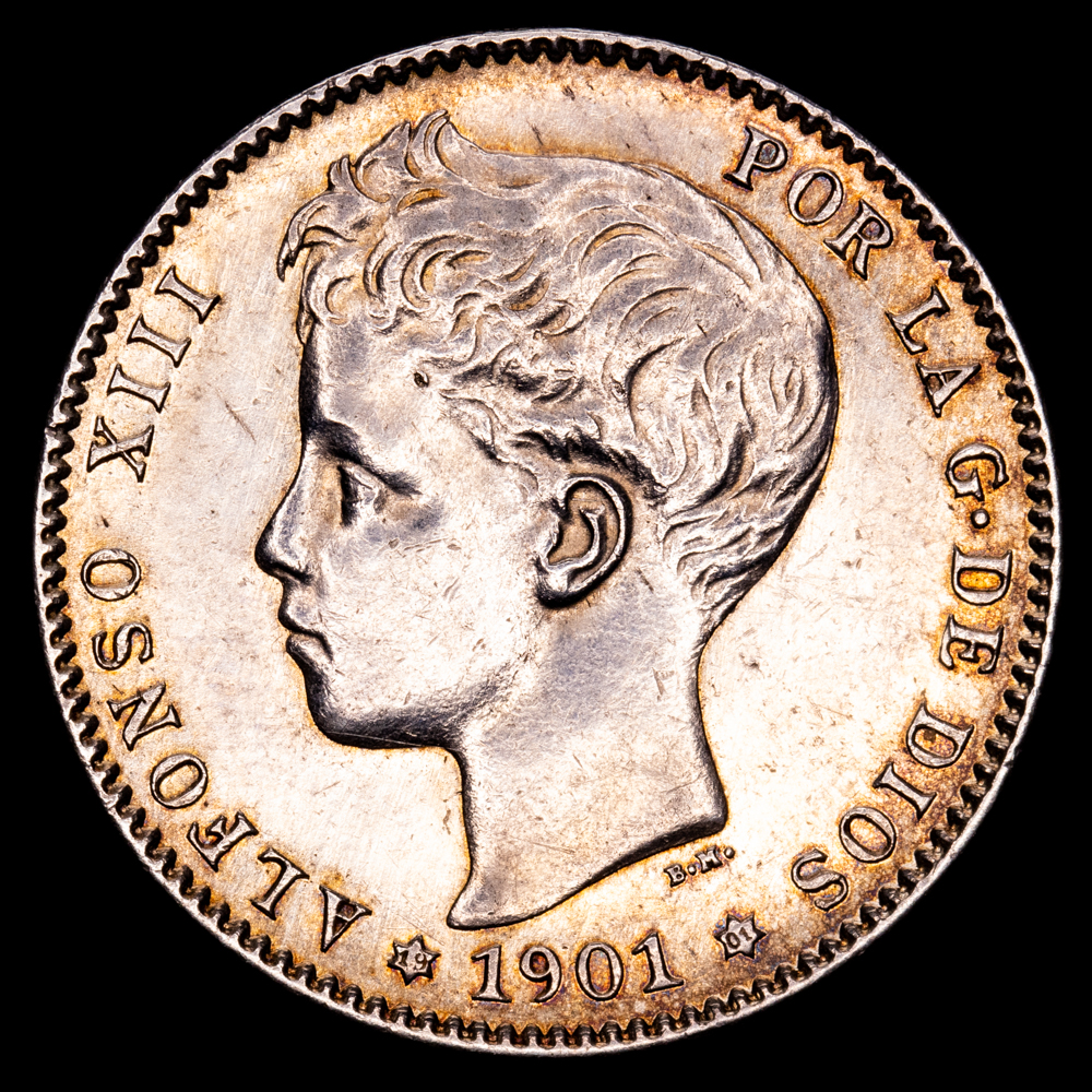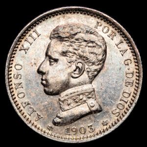 Alfonso XIII. 1 Peseta (5,06 g.). Madrid. 1903. Ensayador SM·V. CAL-67. UNC. Precioso color.