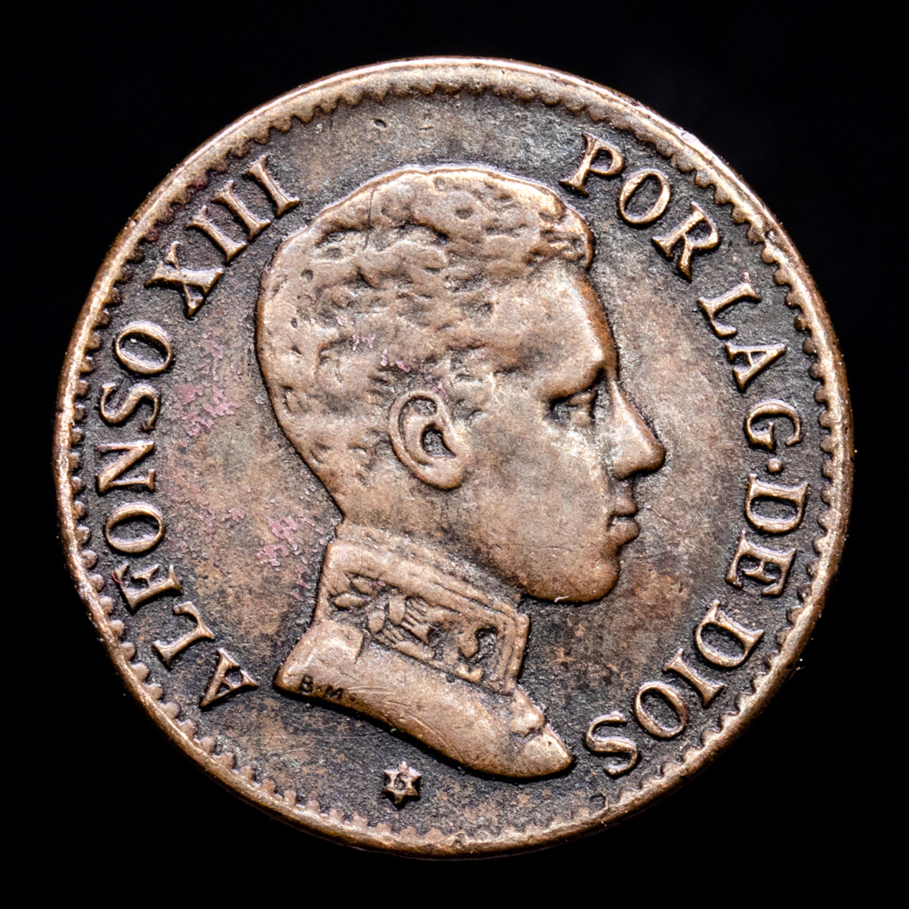 Alfonso XIII. 1 Céntimo. (0,94 g.). Madrid. 1906. Ensayador SM·V. Aureo y Calicó – 1. MBC+. Rara