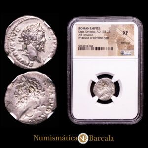 Septimio Severo. Denario incuso. Roma, 193-211 d.C. Encapsulada por la NGC XF.